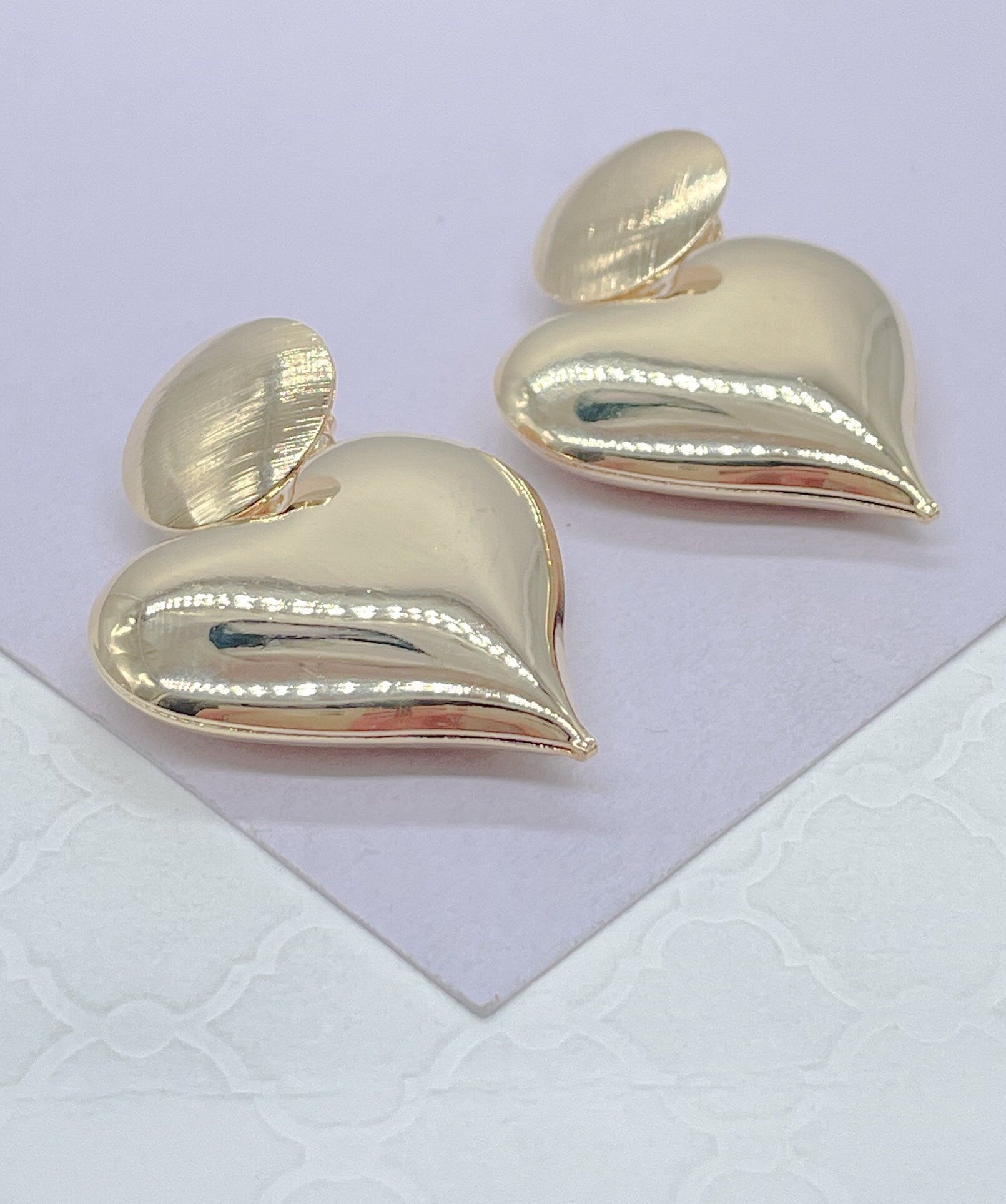 18k Gold Filled Giant Puffy Dangle Heart Earrings