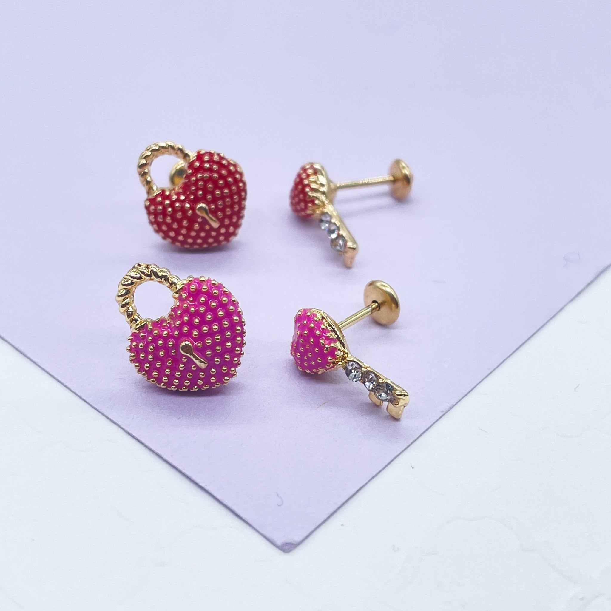 18k Gold Filled Heart and Lock Earring, available in two colors: