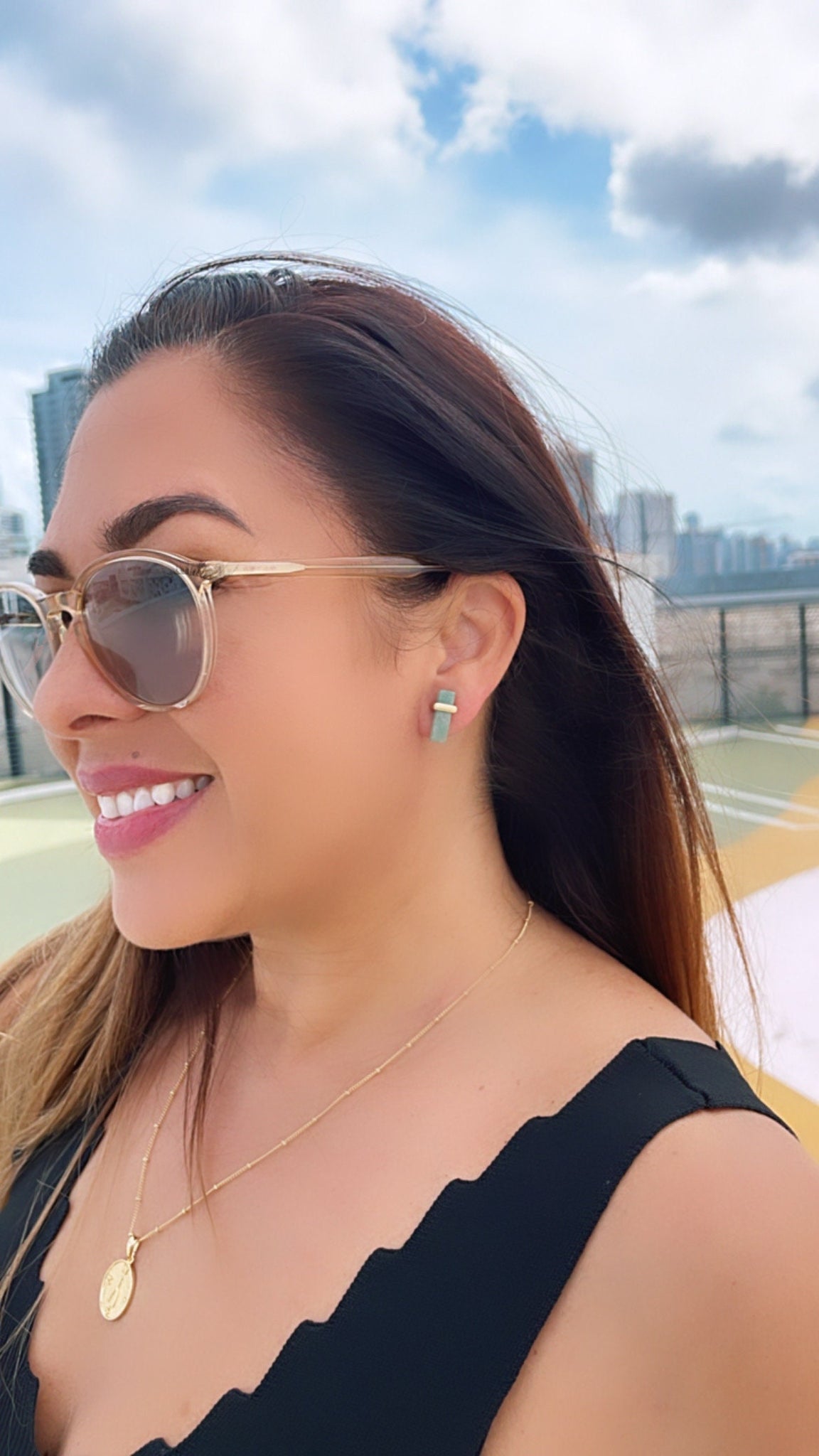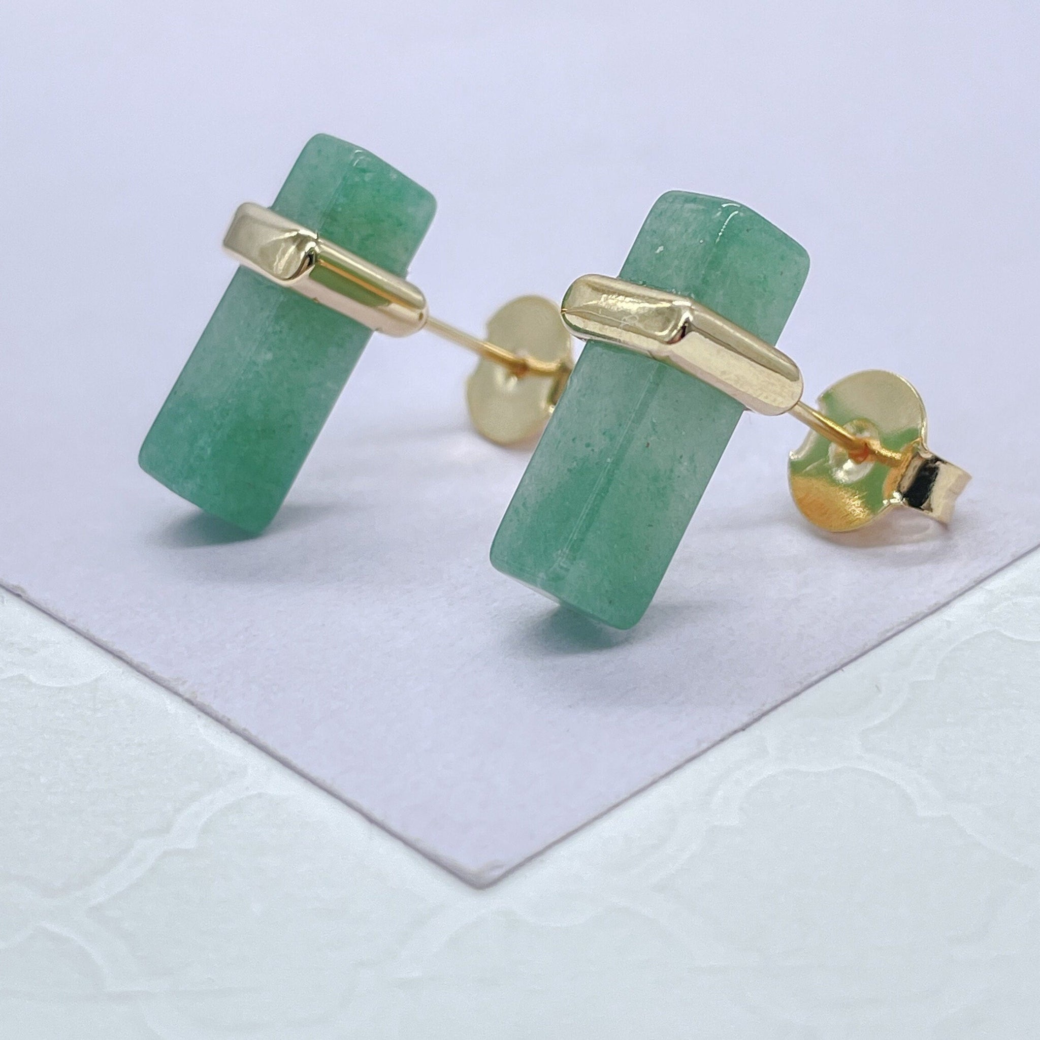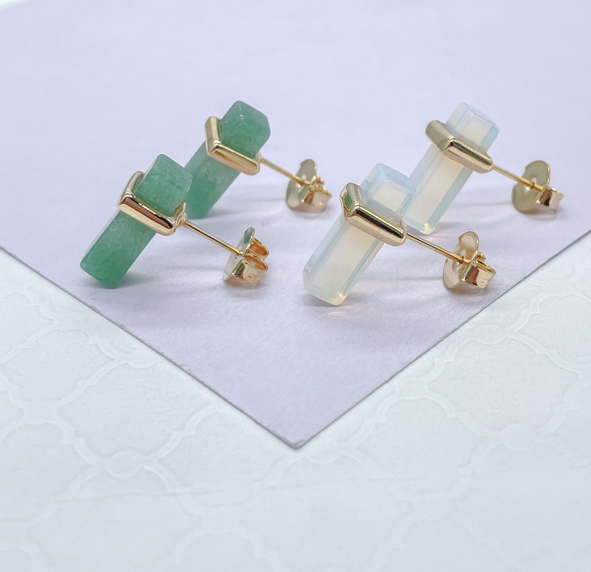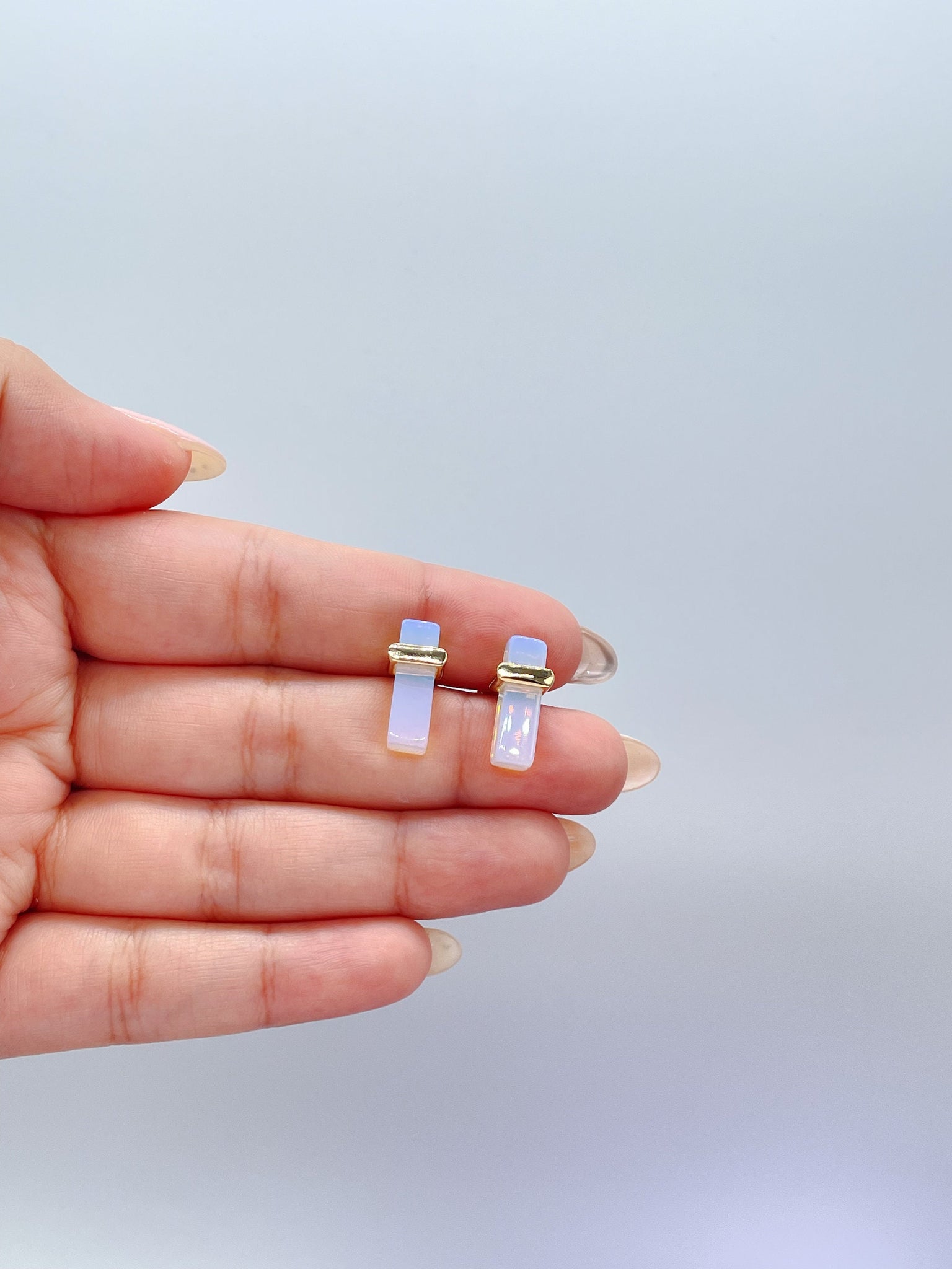18k Gold Filled Iridescent, Mini Brick-Stone Shaped Stud Earring