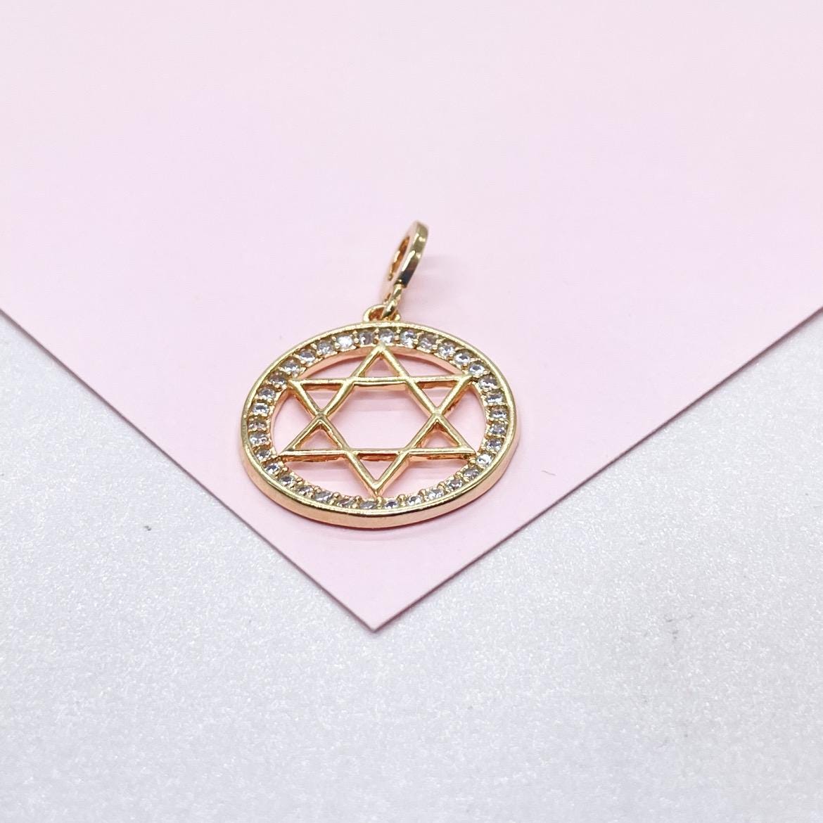 18k Gold Filled Large Star of David Outline Pendant Crowned with CZ Stones