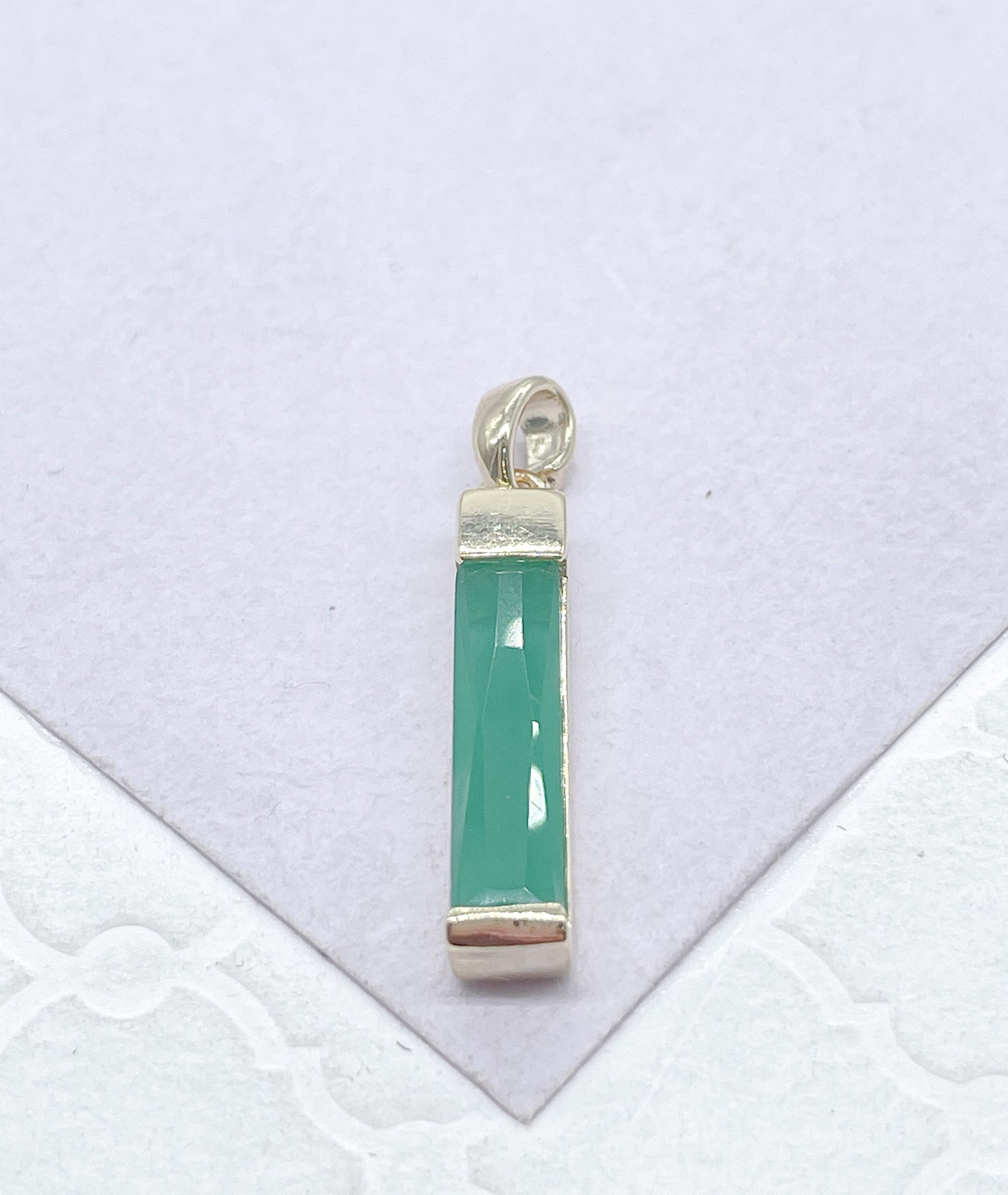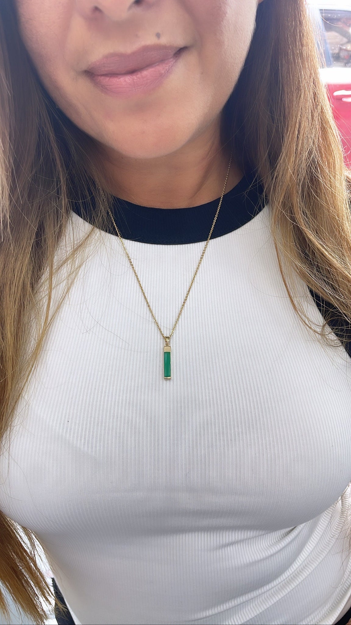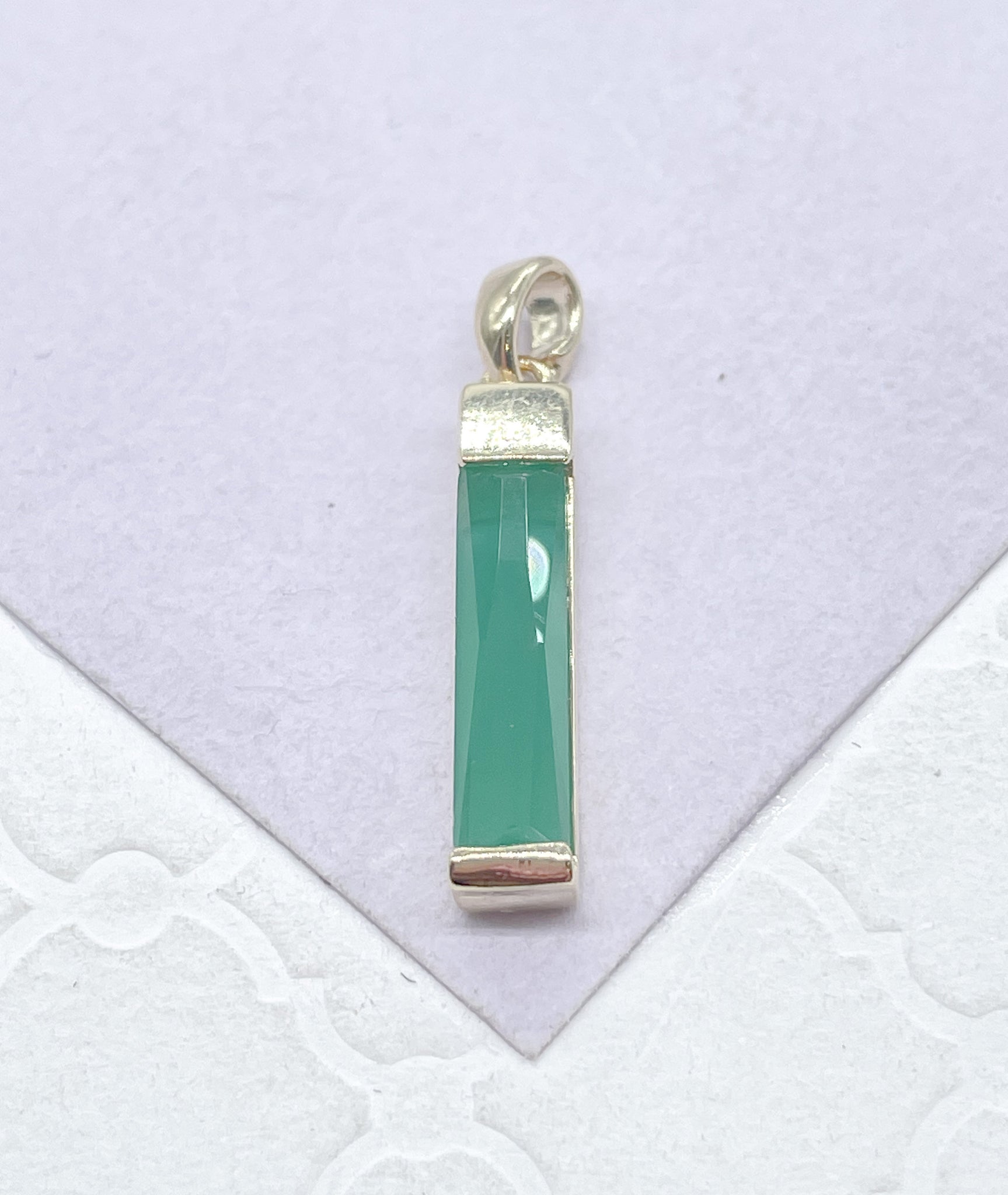 18k Gold Filled Light Emerald Green Baguette Cut Bar Pendant
