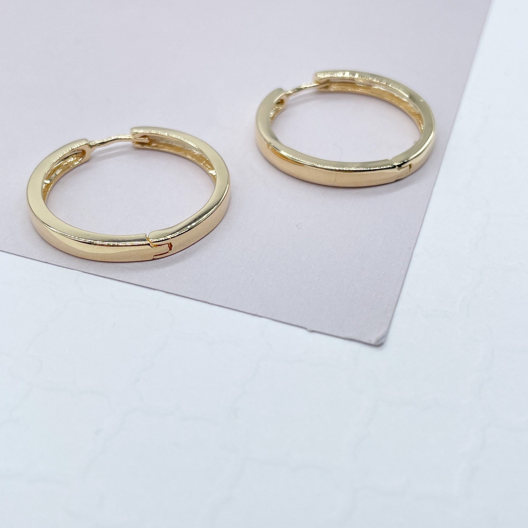 18k Gold Filled Medium Sharpe Edged Plain Hoop Earrings