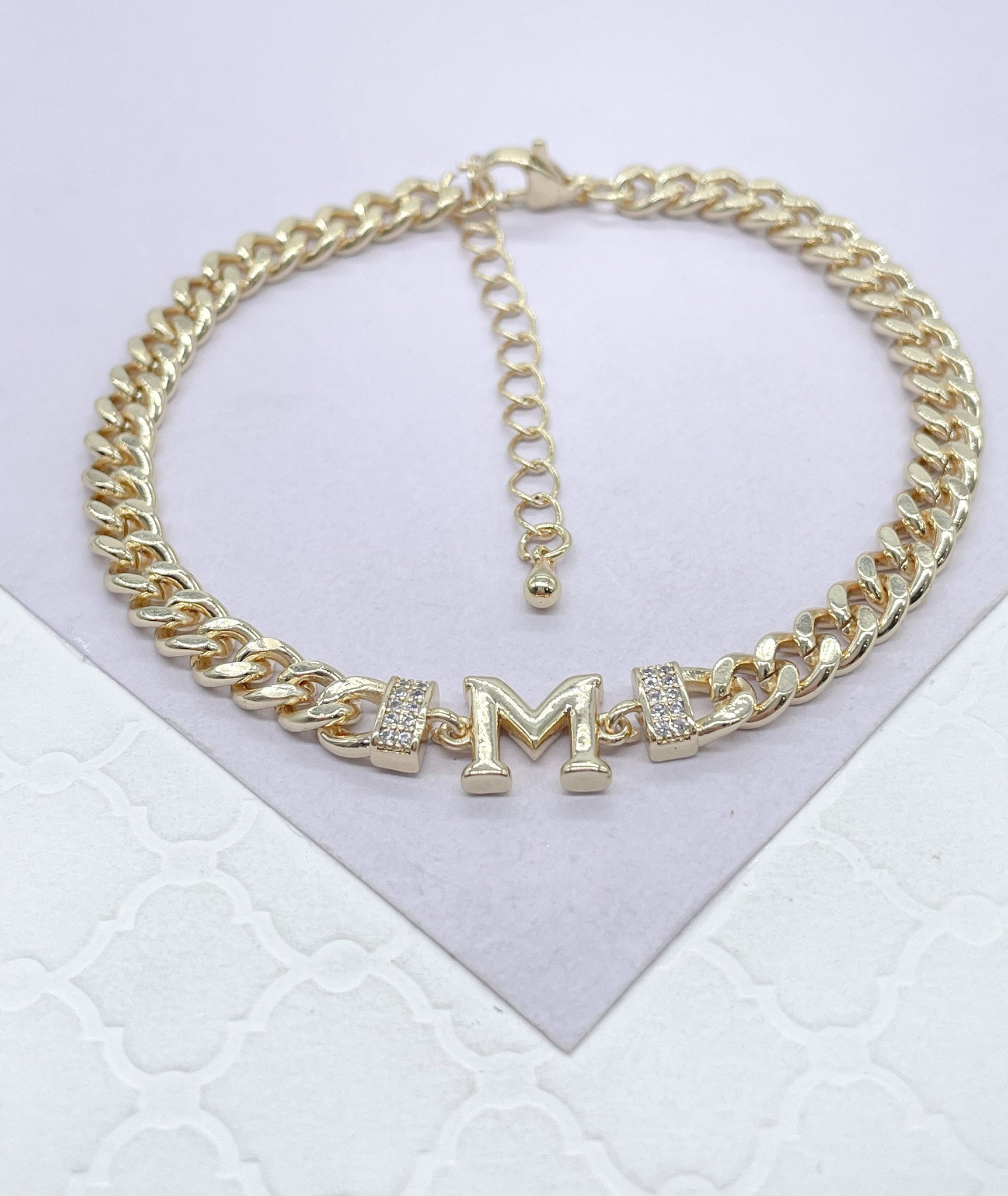 18k Gold Filled Miami Cuban Link Ankle Bracelet Initial Letters A