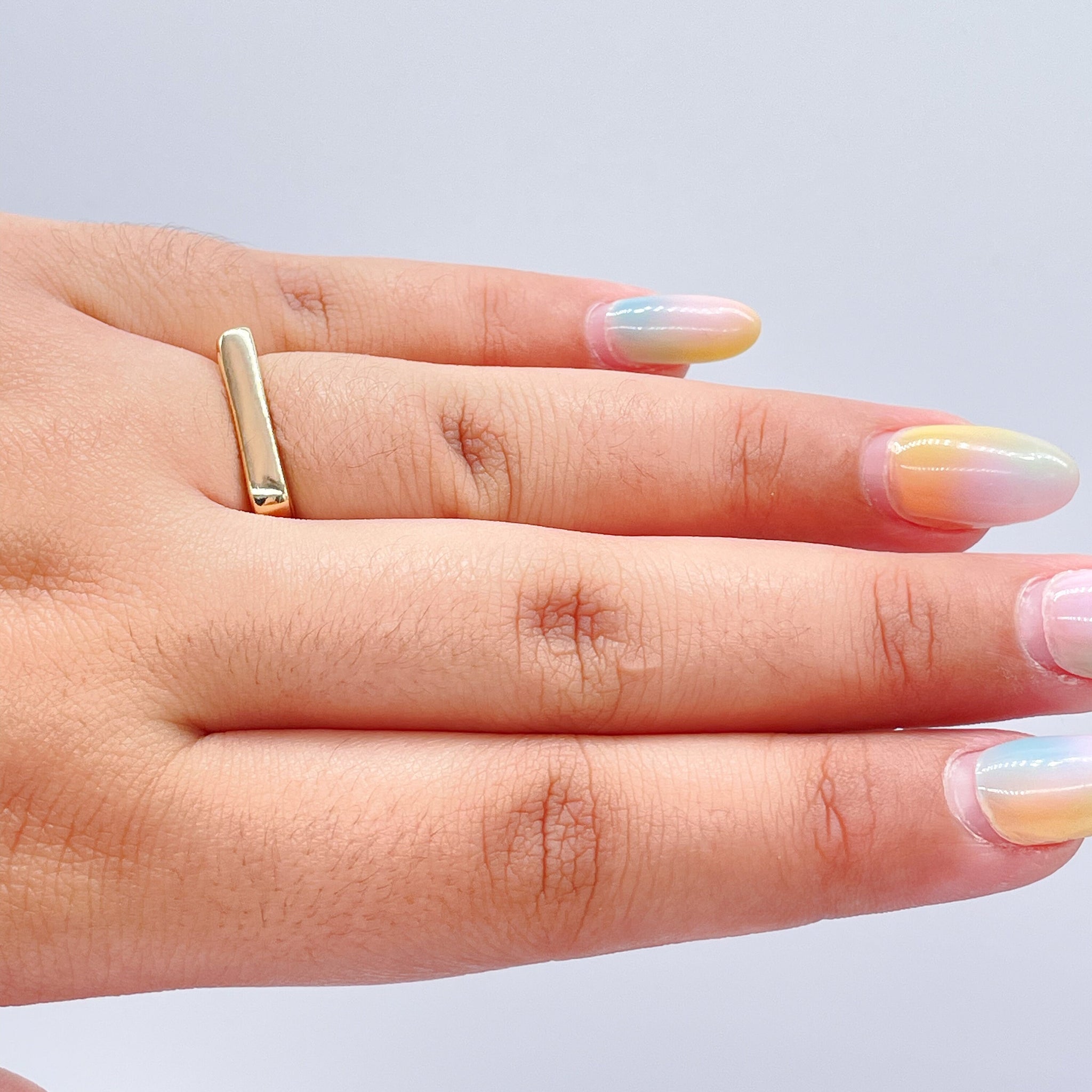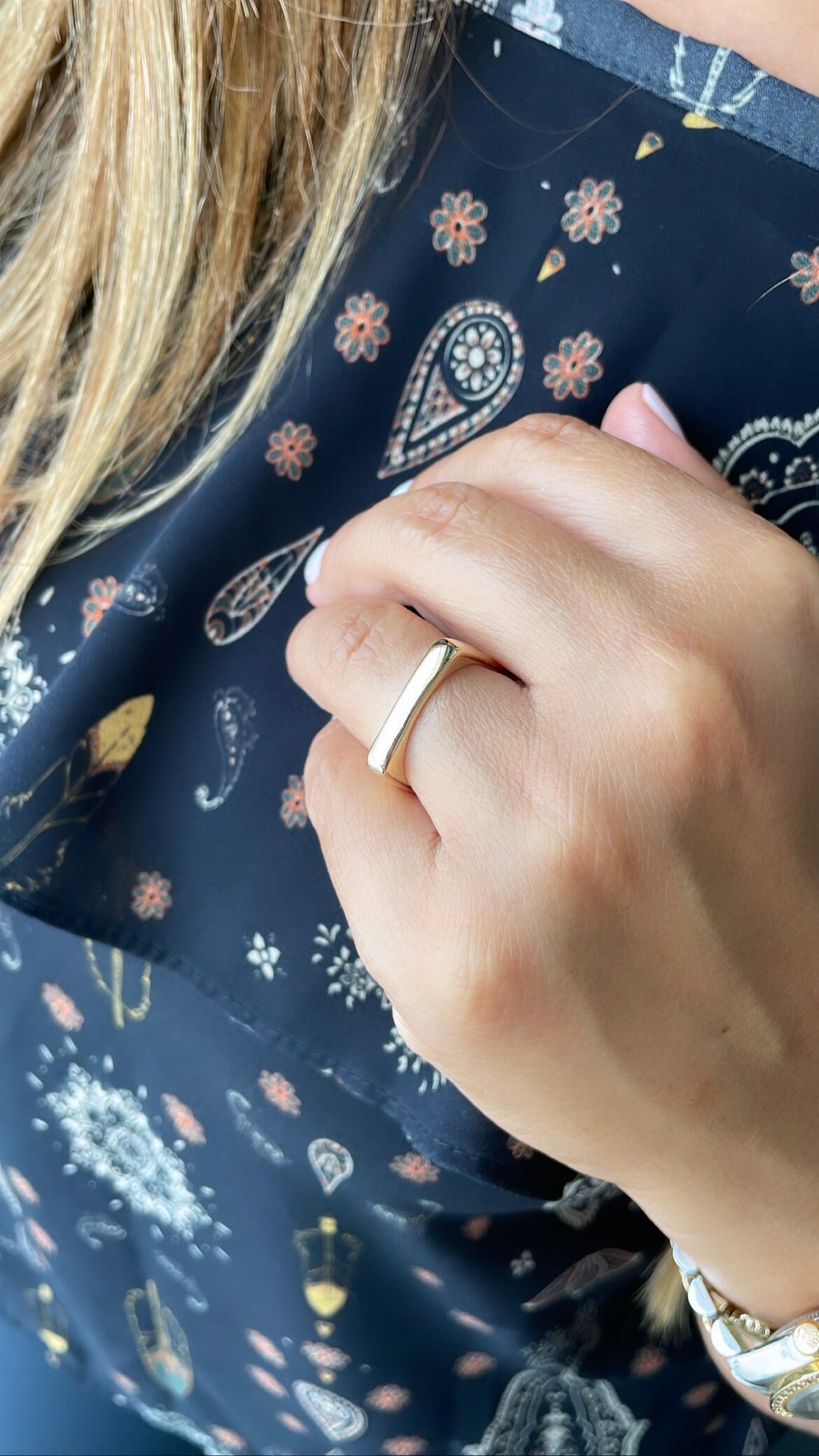 "Transform your style with our 18k Gold Filled Chunky CZ Eternity Band Ring. Designed to create the most exquisite and luxurious stack, this ring adds a touch of glamour to any outfit. Elevate your look and make a statement with our stunning rings."18k Gold Filled Minimalist Plain Smooth Square Ring