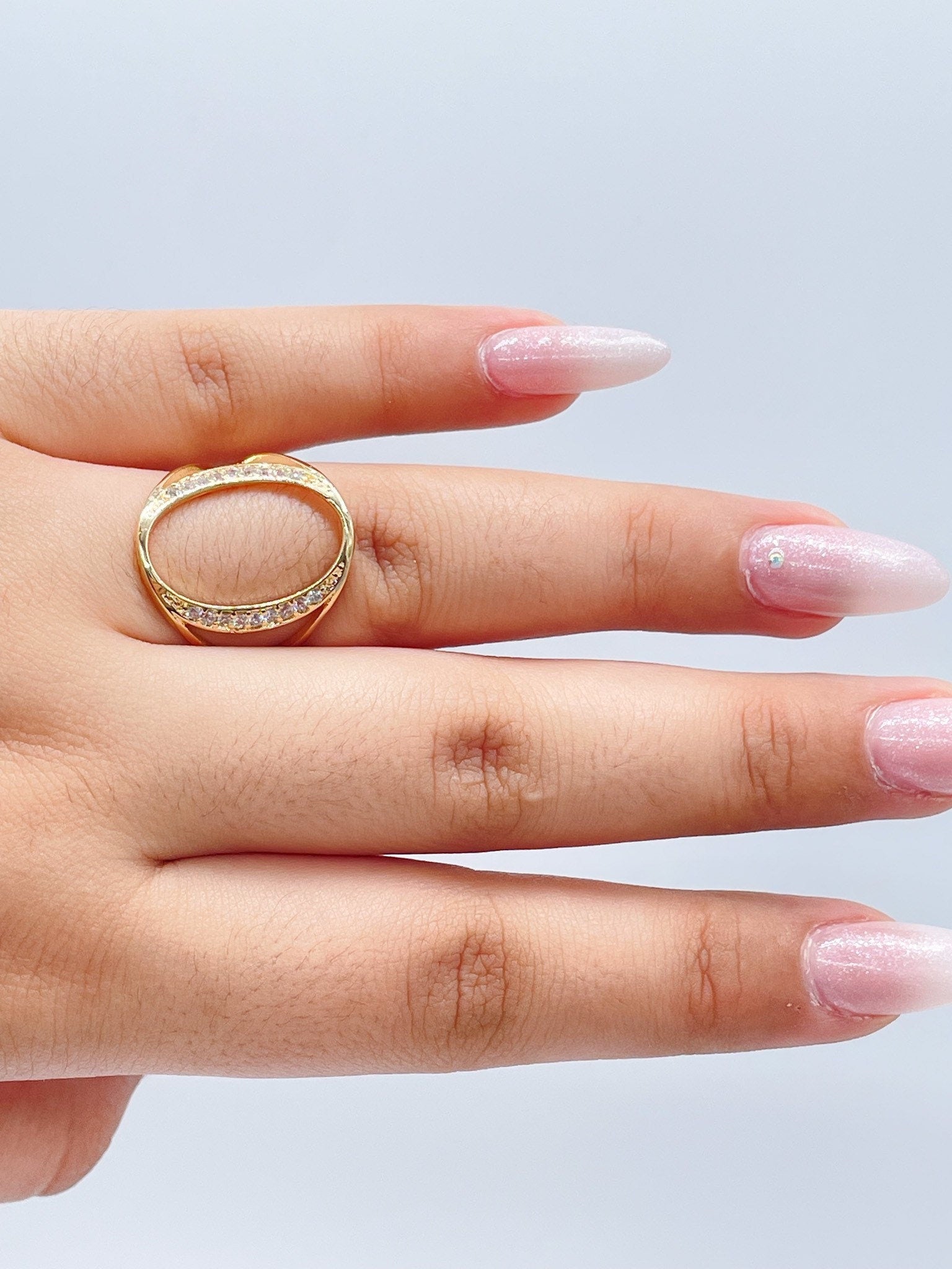 18k Gold Filled Oval Ring Surrounded with Micro Pave Zirconia Stones Wholesale Jewelry Supplies