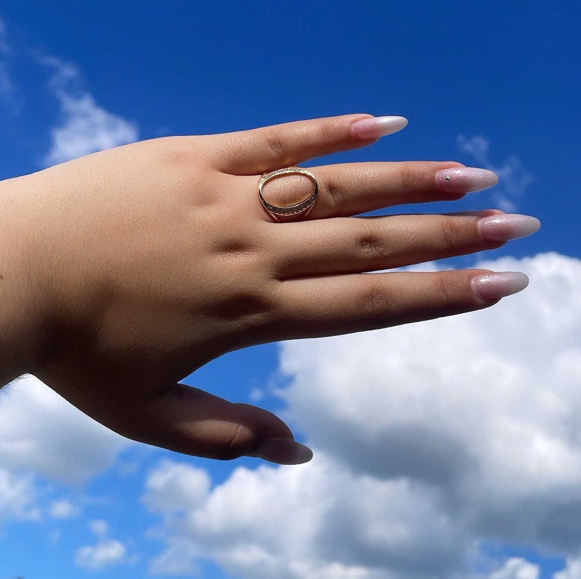 Transform your style with our 18k Gold Filled Rings. Designed to create the most exquisite and luxurious stack, this ring adds a touch of glamour to any outfit. Elevate your look and make a statement with our stunning eternity band.18k Gold Filled Oval Ring Surrounded with Micro Pave Zirconia Stones