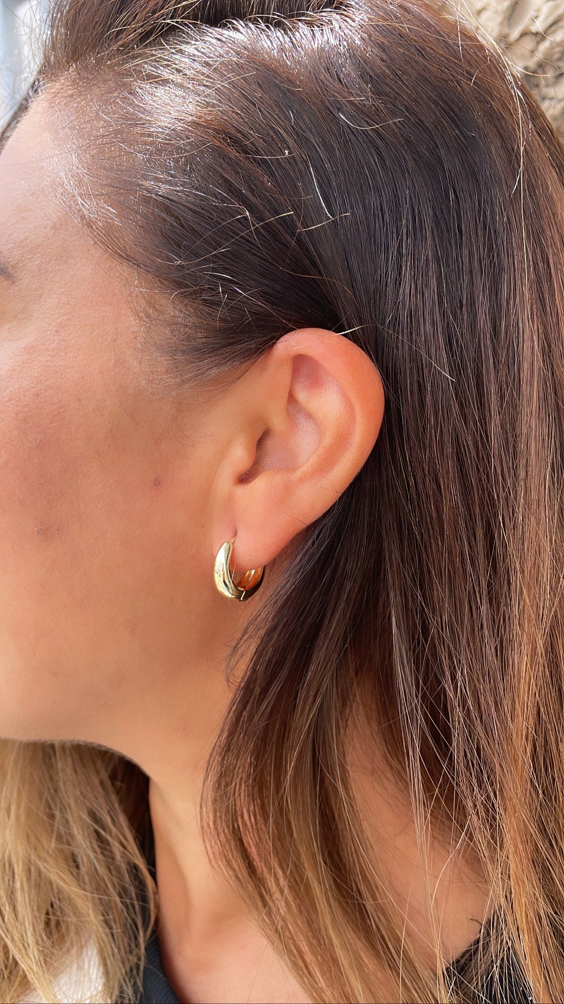 18k Gold Filled Oval Shape Smooth Plain Huggie Hoop Earring, Available in 2 Sizes