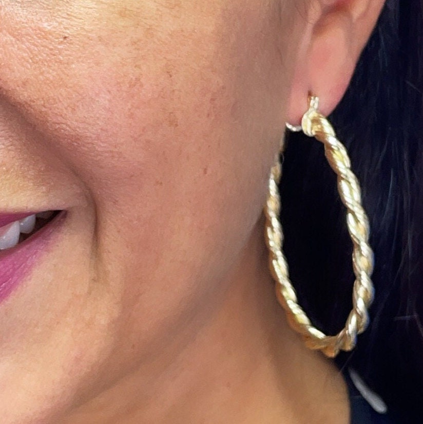 18k Gold Filled Oval Shaped Twisted Hoop Earrings