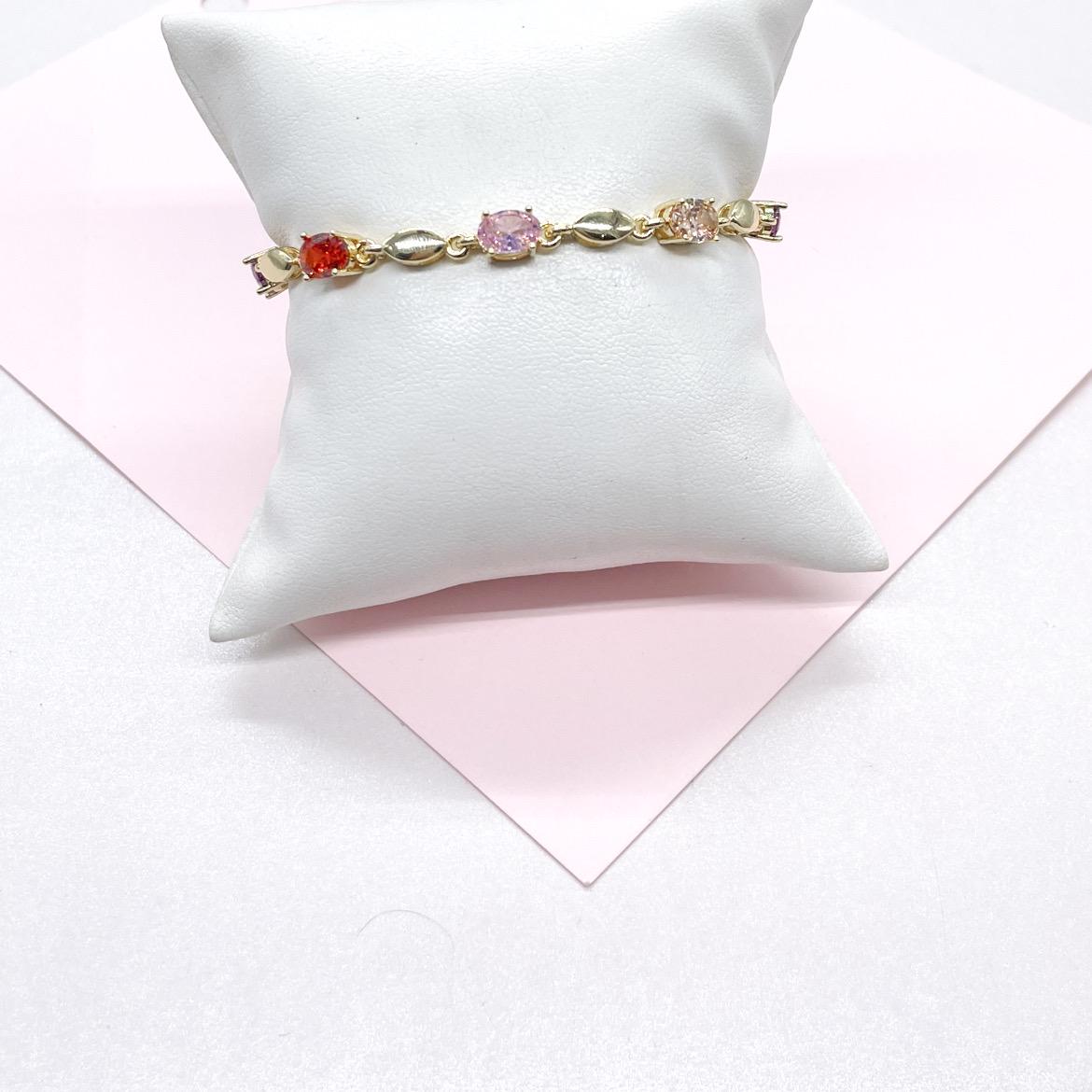 18k Gold Filled Oval Stone Charm Bracelet with 3 Stones