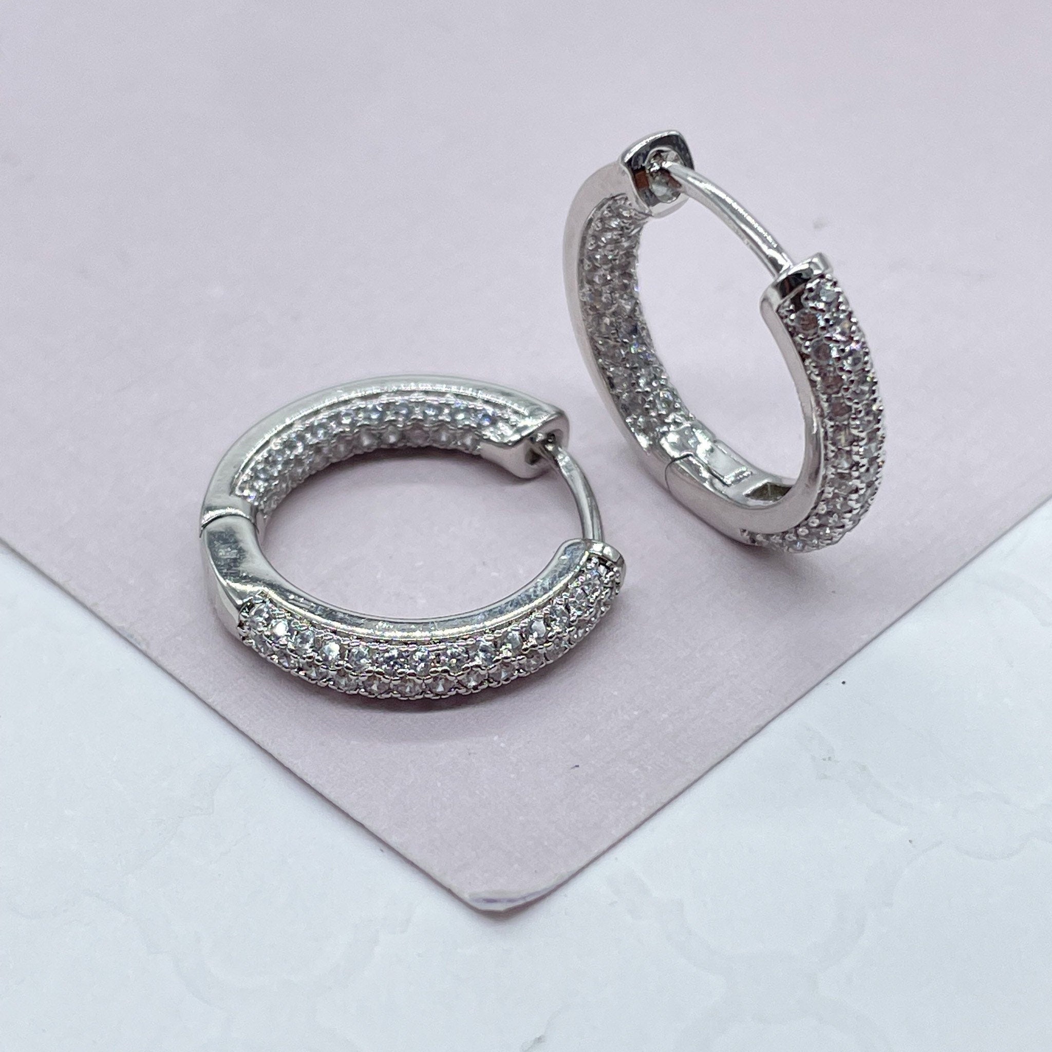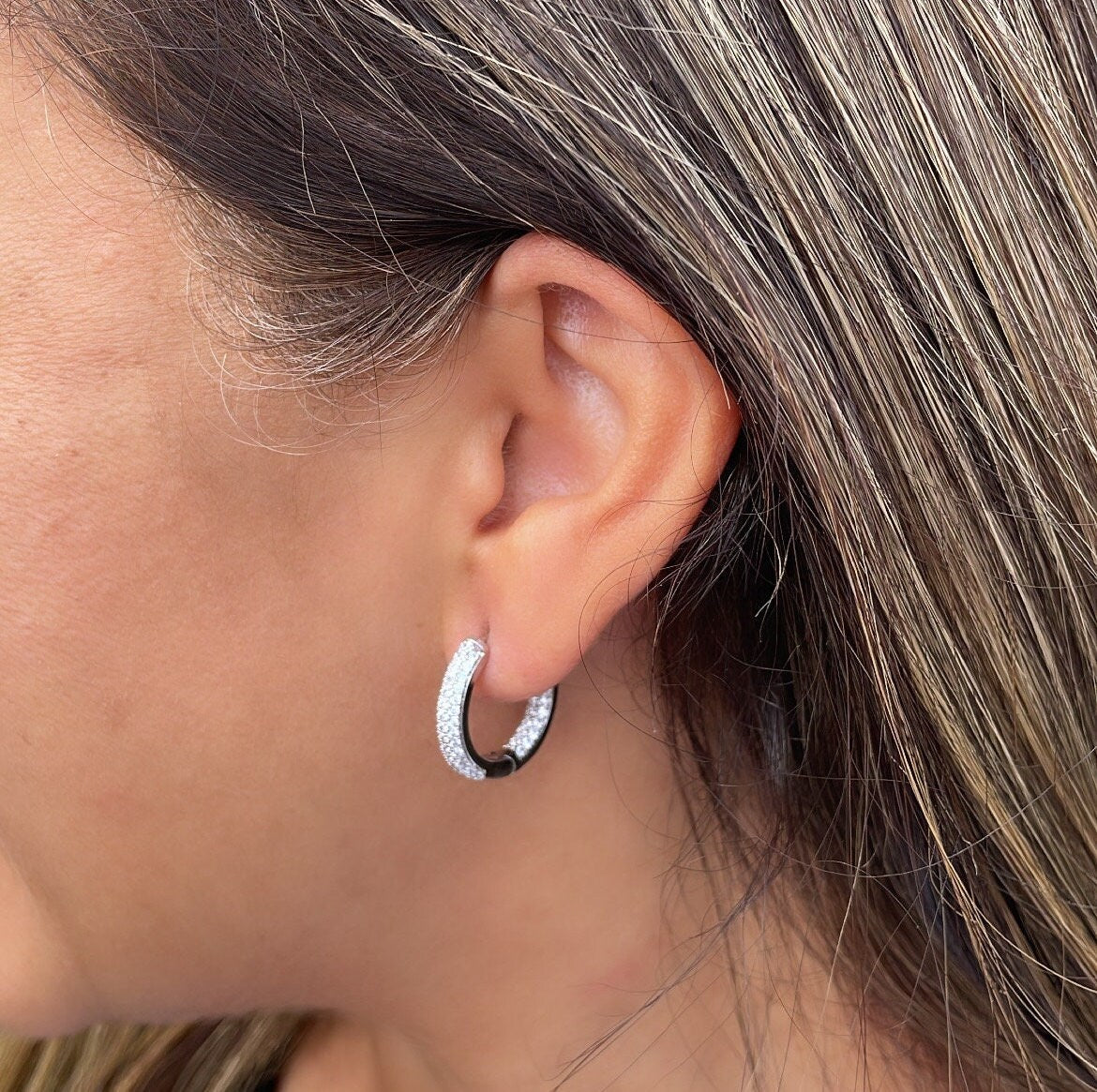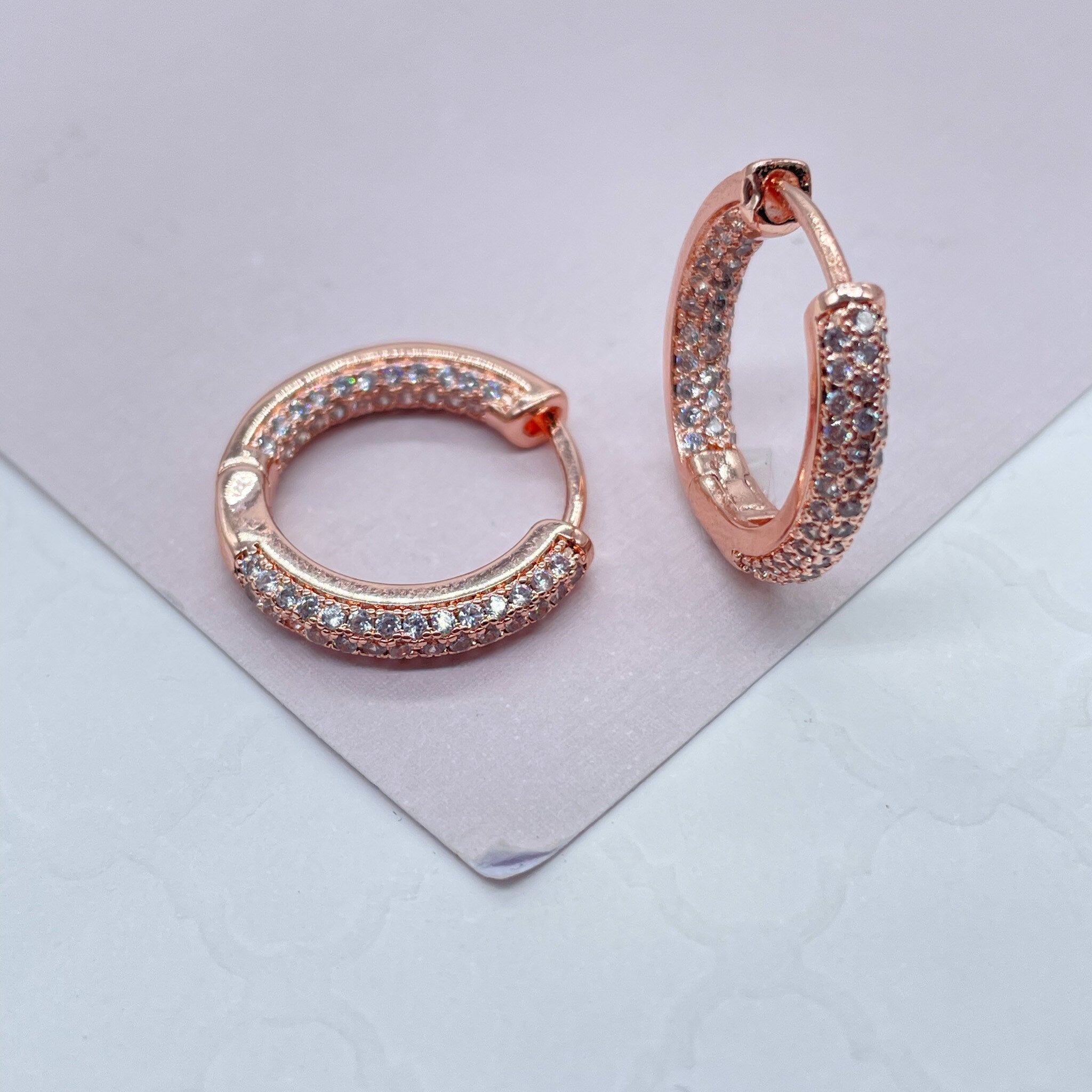 18k Gold Filled Pave Small Hoops, Available in Gold, Silver and Rose Gold