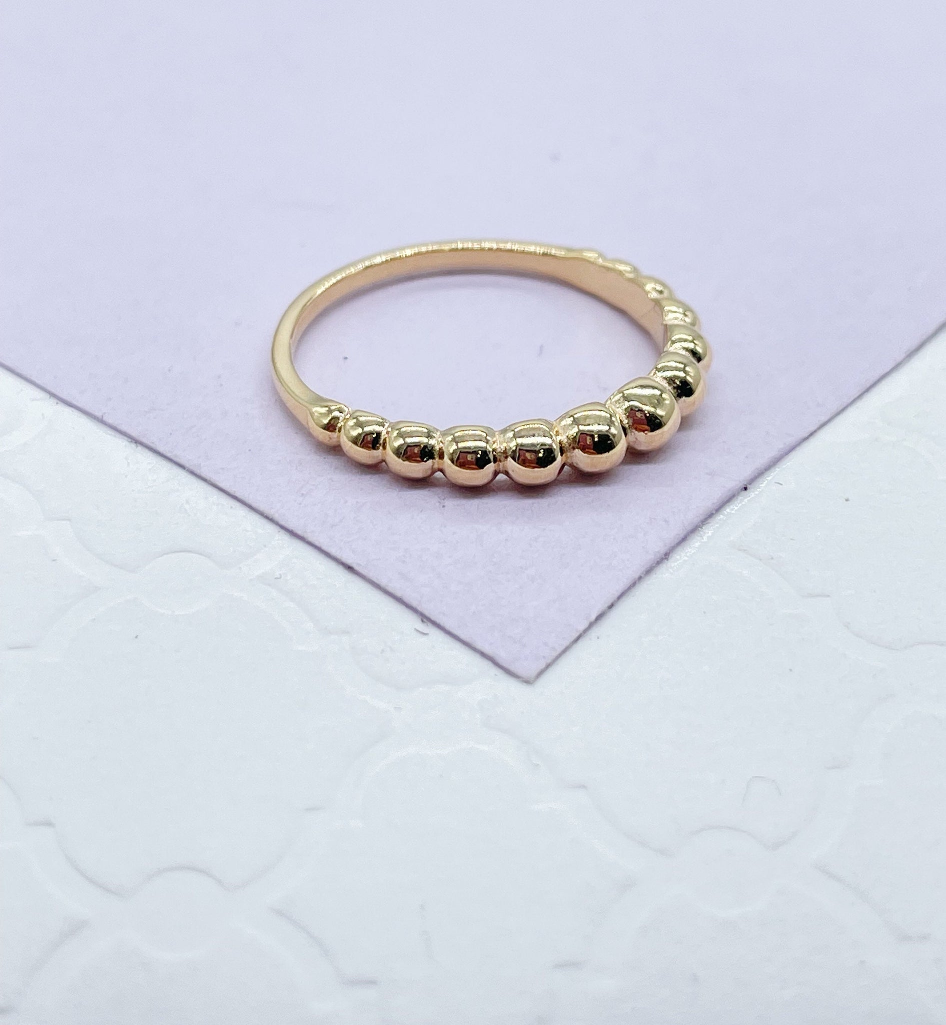 Transform your style with our 18k Gold Filled Rings. Designed to create the most exquisite and luxurious stack, this ring adds a touch of glamour to any outfit. Elevate your look and make a statement with our stunning eternity band."Transform your style with our 18k Gold Filled Chunky CZ Eternity Band Ring. Designed to create the most exquisite and luxurious stack, this ring adds a touch of glamour to any outfit. Elevate your look and make a statement with our stunning rings."18k Gold Filled Plain Beaded Ring with Smooth Back Band