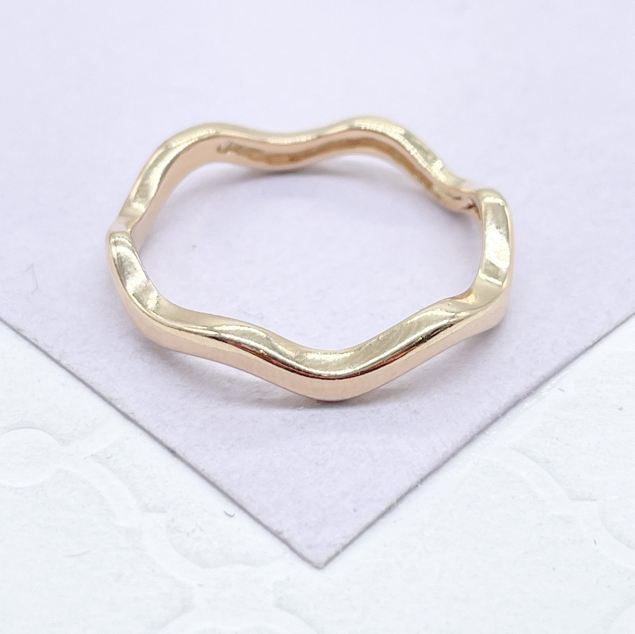 "Transform your style with our 18k Gold Filled Chunky CZ Eternity Band Ring. Designed to create the most exquisite and luxurious stack, this ring adds a touch of glamour to any outfit. Elevate your look and make a statement with our stunning rings."18k Gold Filled Plain Smooth Wavy Ring, Stackable