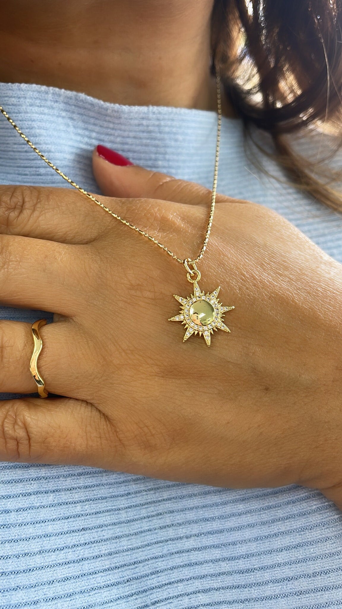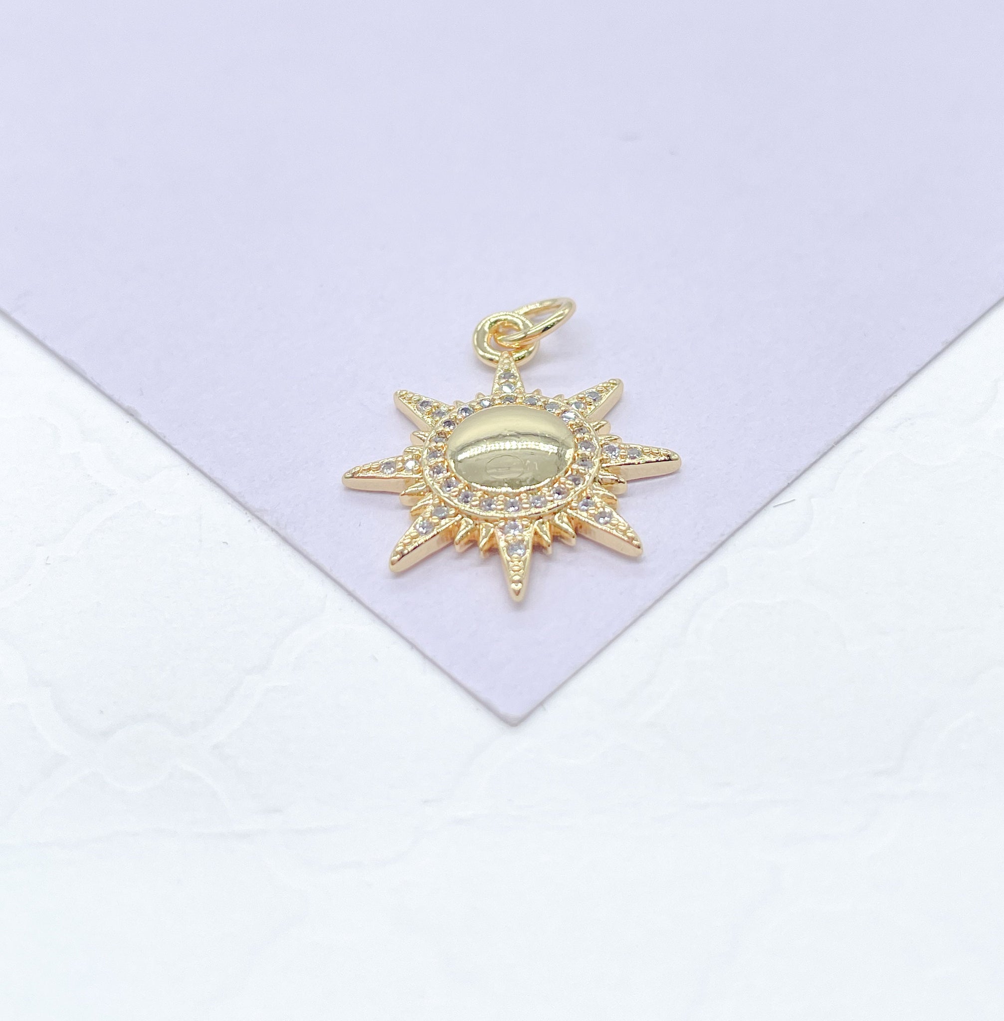 18k Gold Filled Plain Sun Pendant With White Pave Sun Rays, Dainty Pendant, Sun Pendant, Medallion Pendant