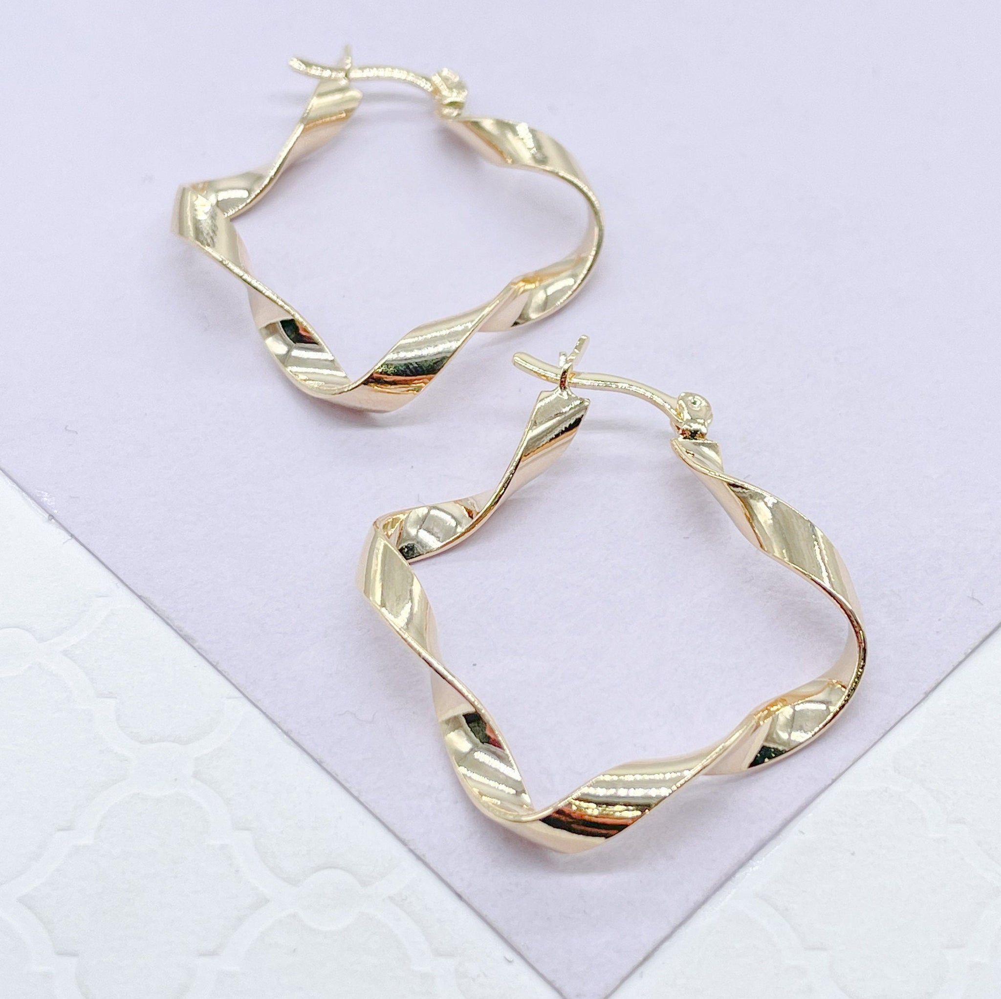 18k Gold Filled Plain Thin Chunky Twisted Hoops
