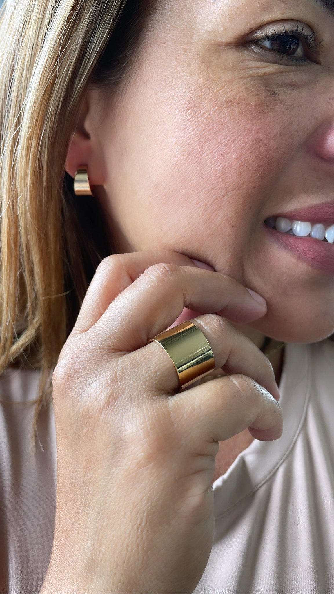 18k Gold Filled Plain Thin, Wide Adjustable Ring