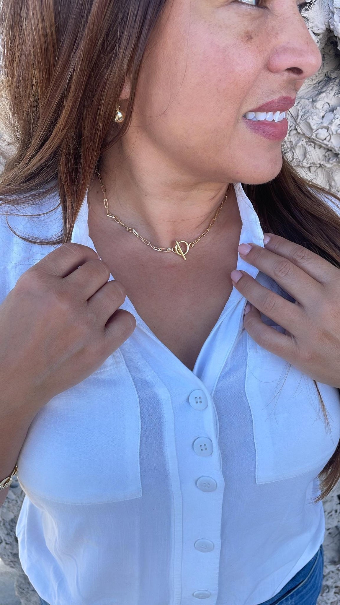 18k Gold Filled Leaf Toggle Choker, Floral Chain with a toggle