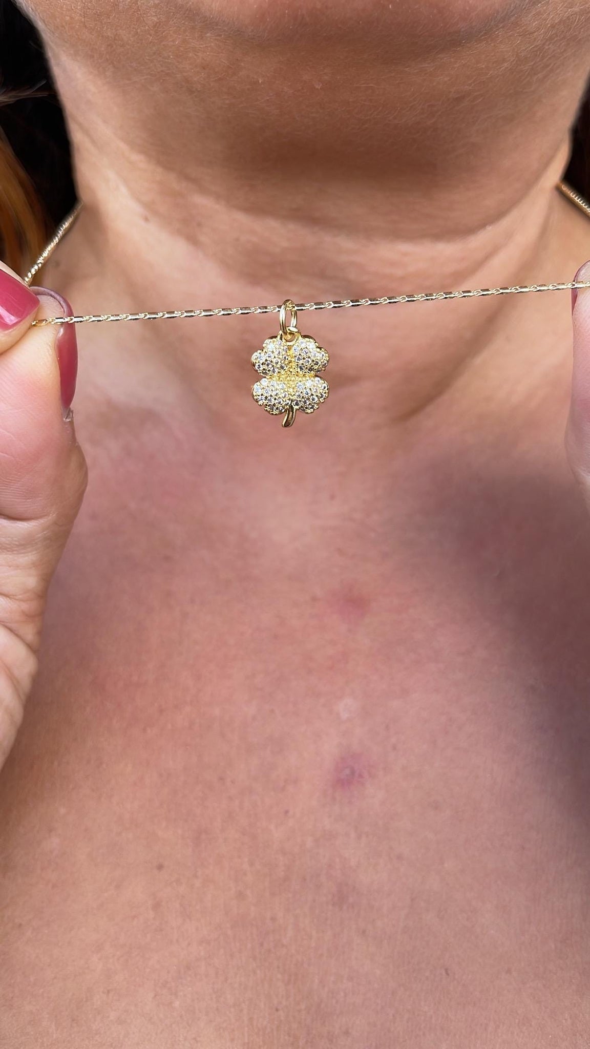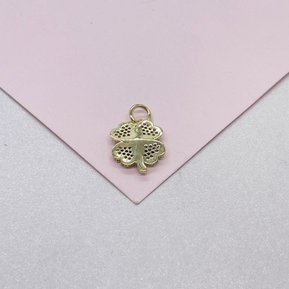 18k Gold Filled Puffy Clover Pendant with CZ Pave Stones