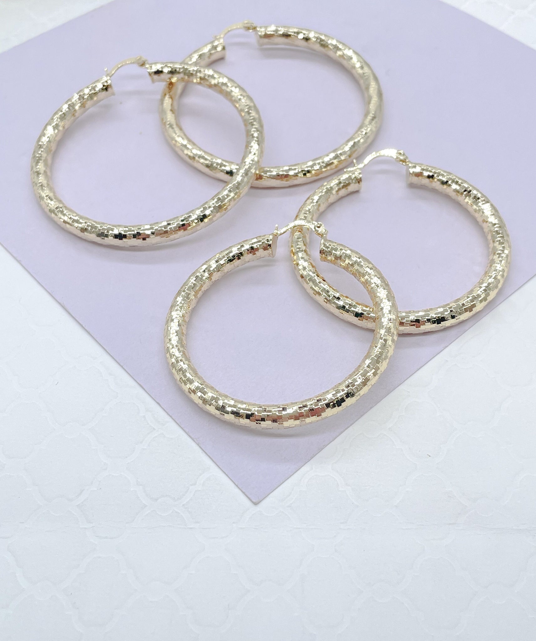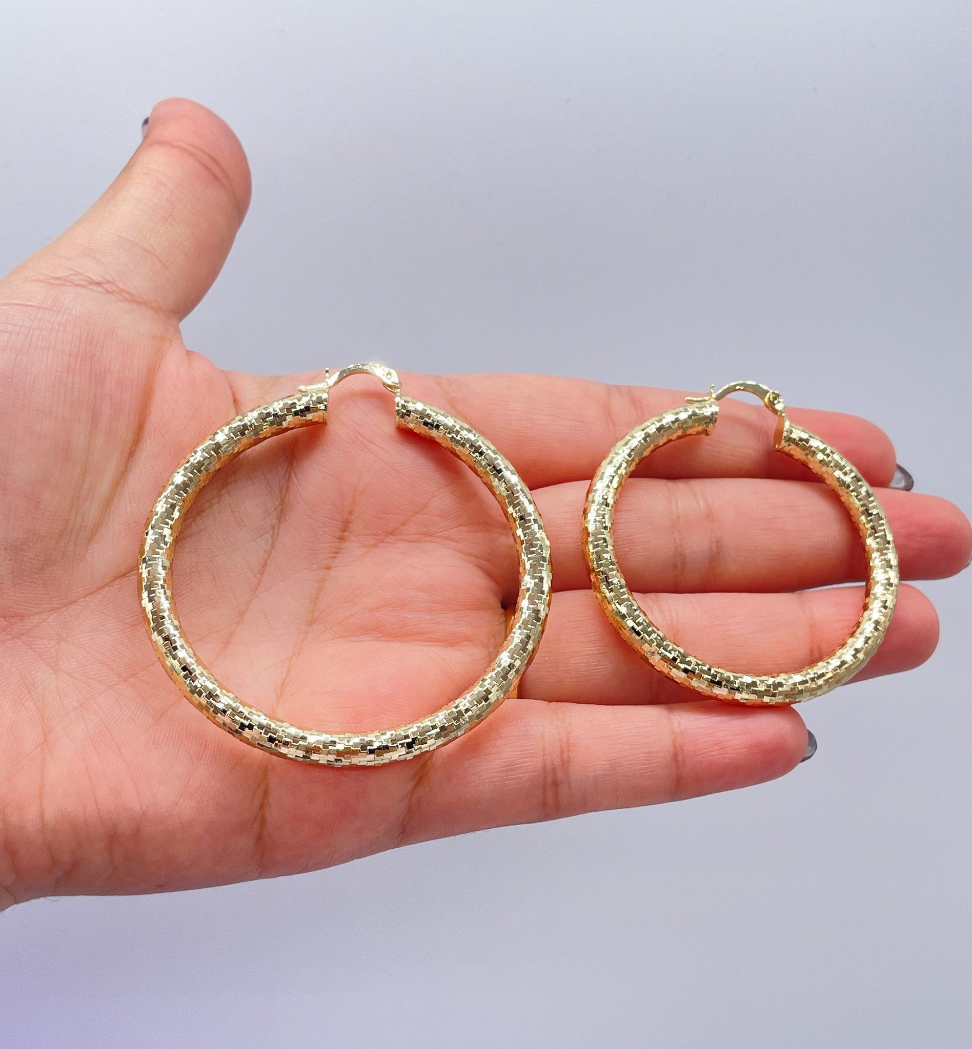 18k Gold Filled Sequin Patterned Hoop Earring Available In 5 Sizes