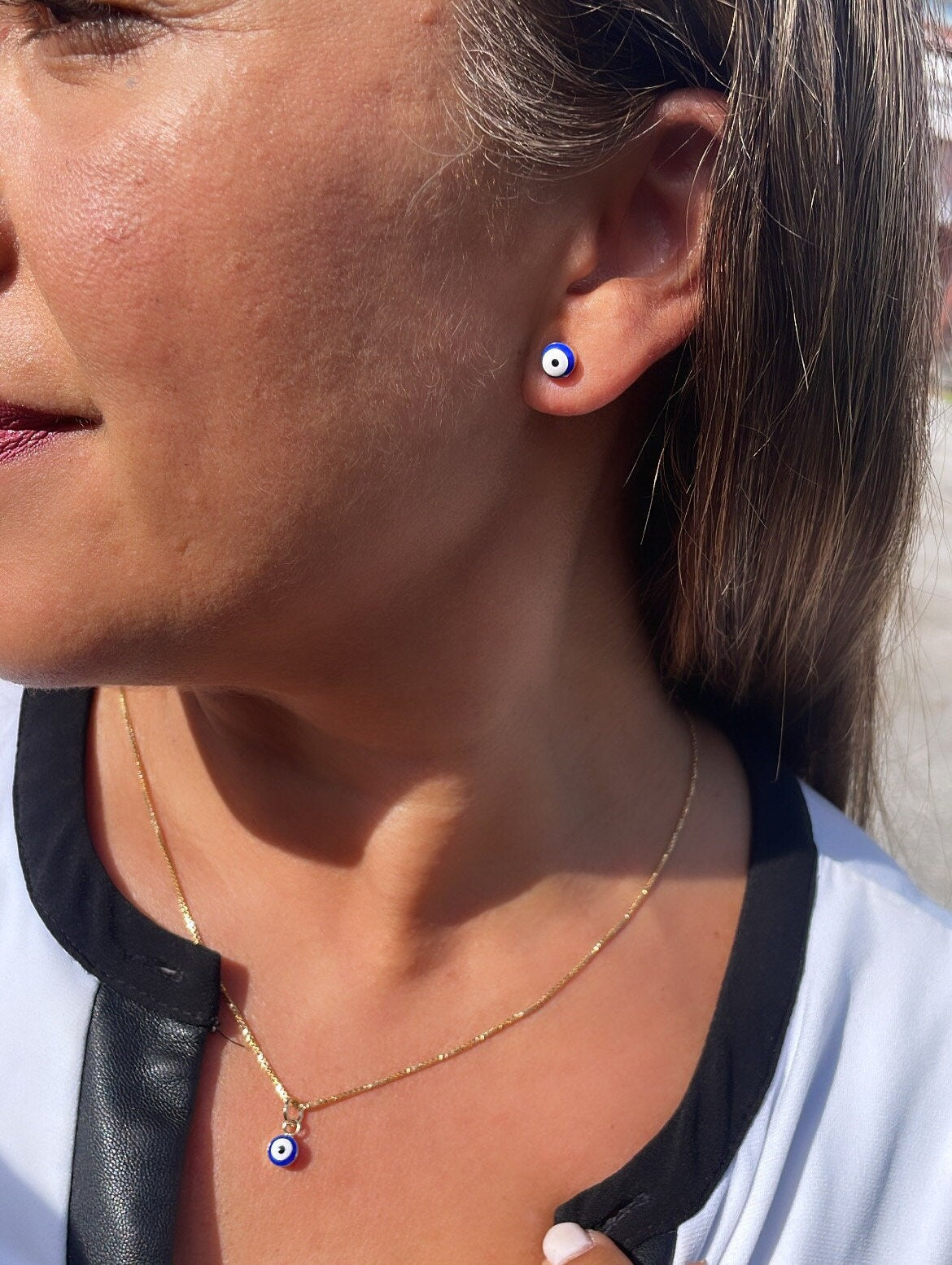 18k Gold Filled Simple & Small Blue Evil Eye Set