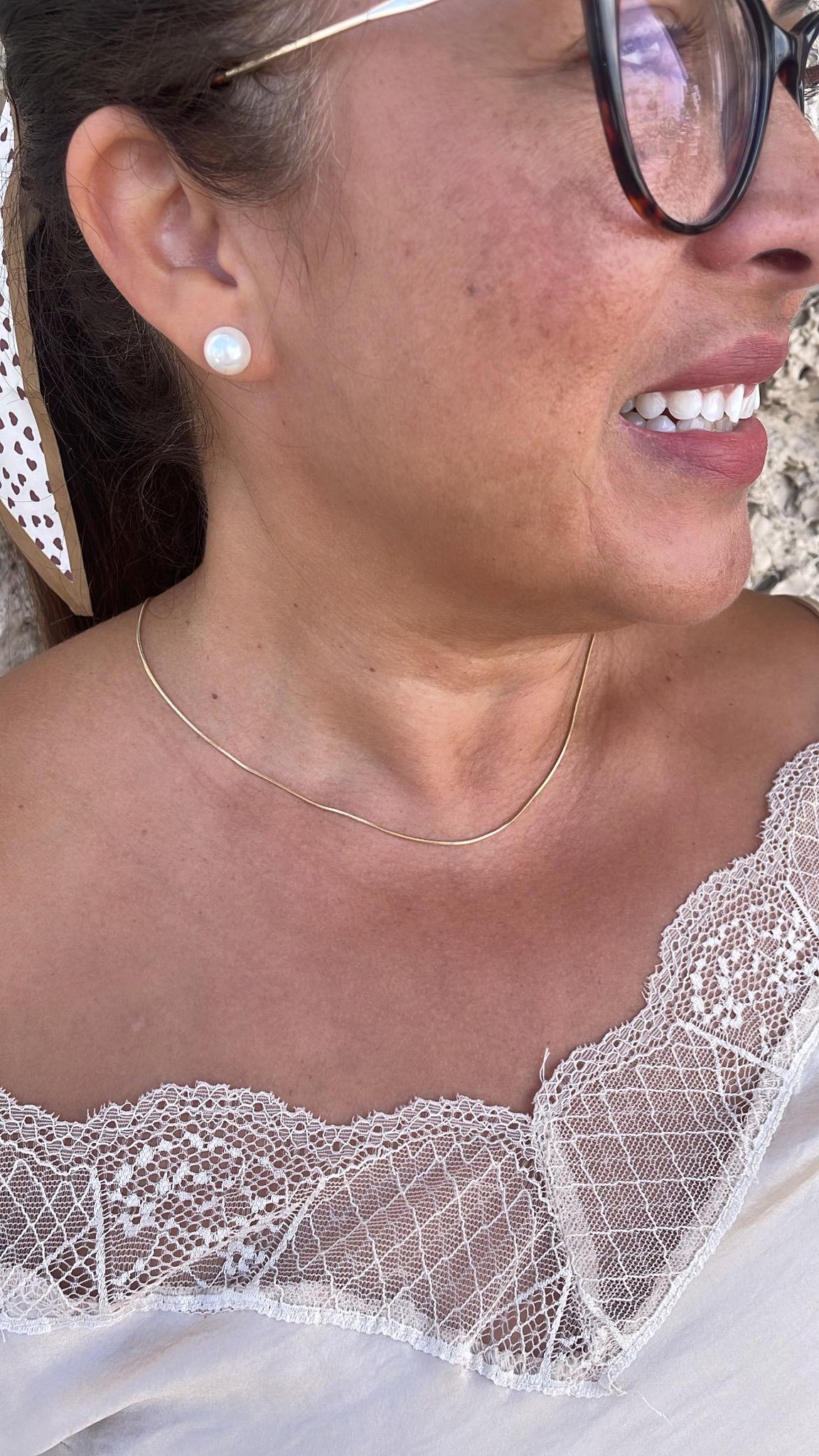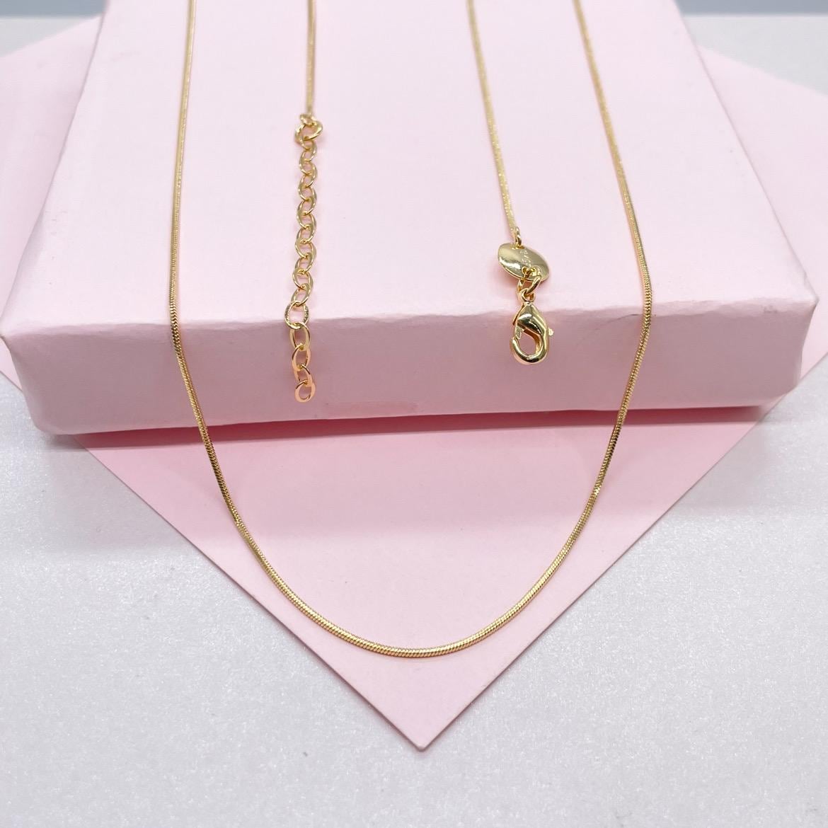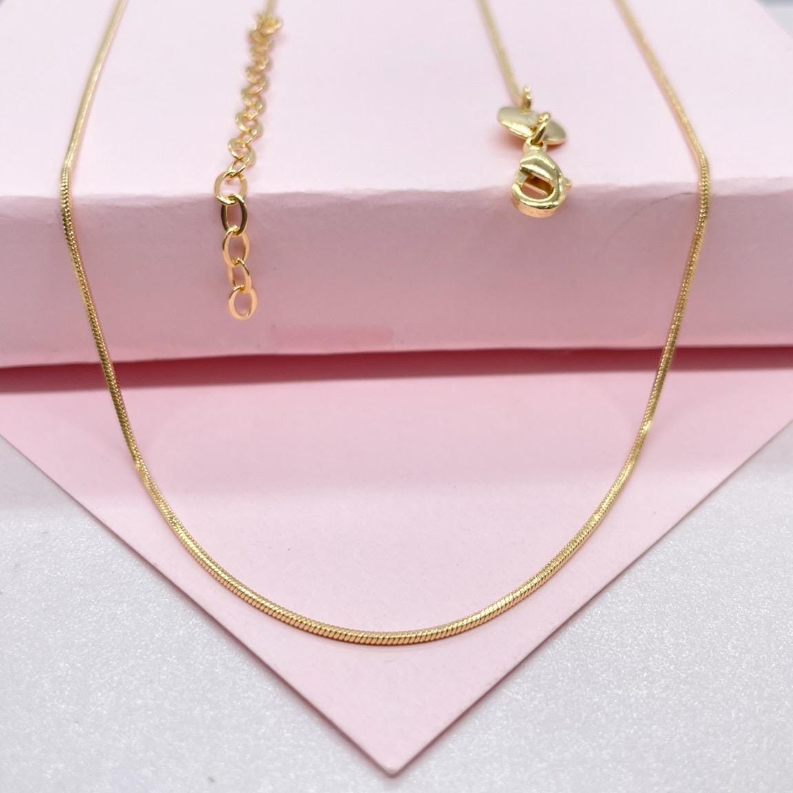 18k Gold Filled Smooth 1mm Herringbone Box Chain Fusion Necklace, Available In 16”& 18”