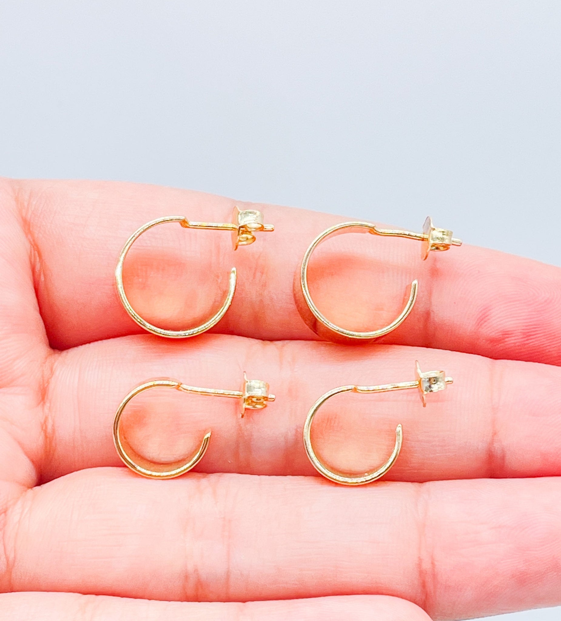 18k Gold Filled Smooth C-Shaped Dainty Plain Hoop Earrings