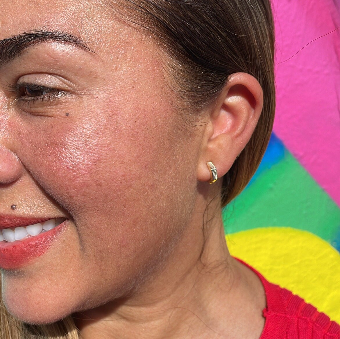 18k Gold Filled Smooth Hexagon Huggie Earring With Scored Lines
