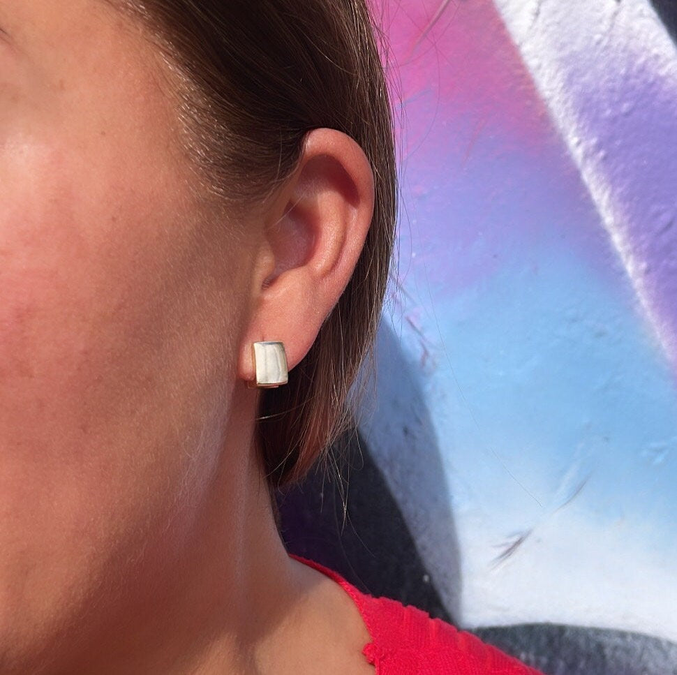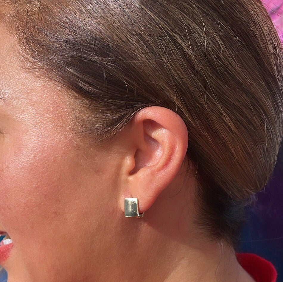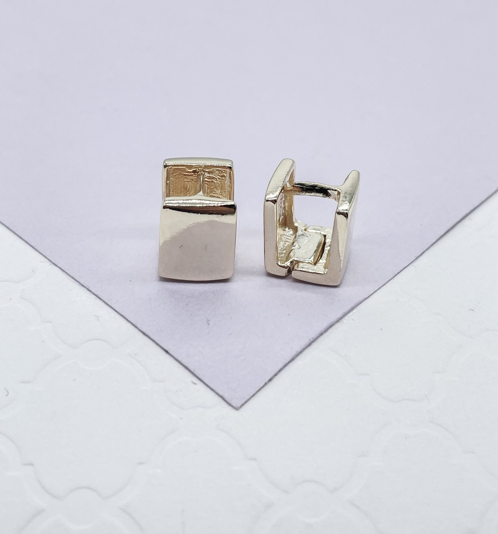 18k Gold Filled Smooth Plain Square Huggies, Wrap Around Earring