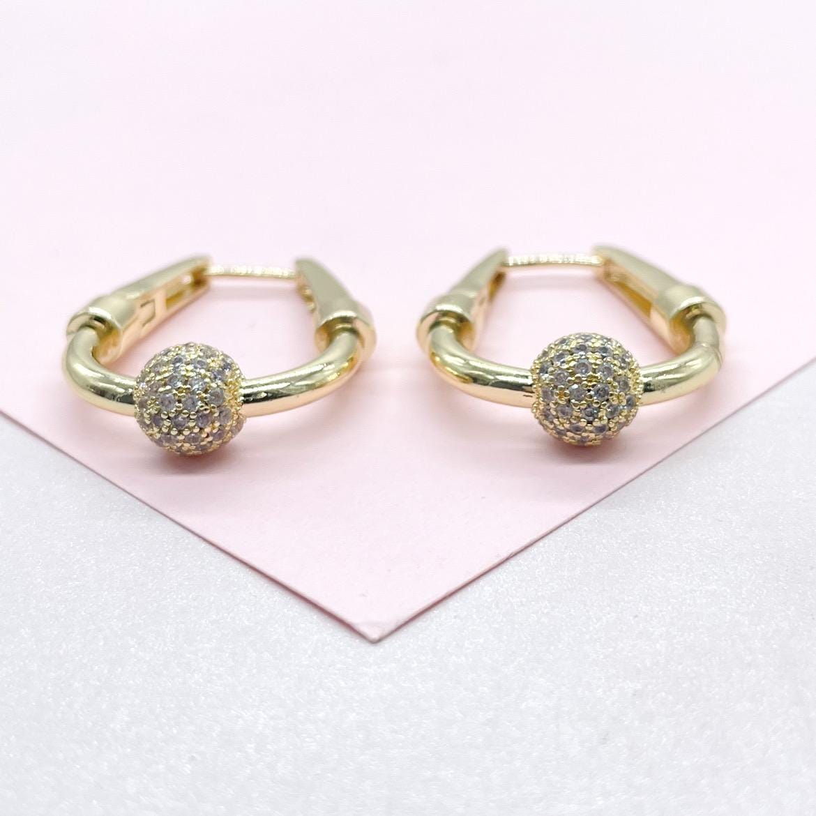 • Load image into Gallery viewer, 18k Gold Filled Smooth Triangle Hoop With CZ Bead Ends