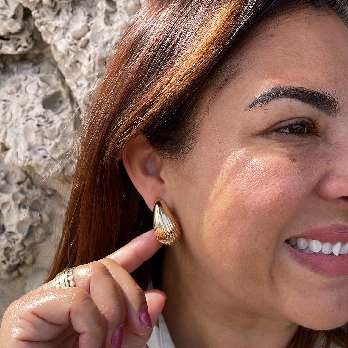 18k Gold Filled Smooth XL Tear Drop Earring with Shell Patterns