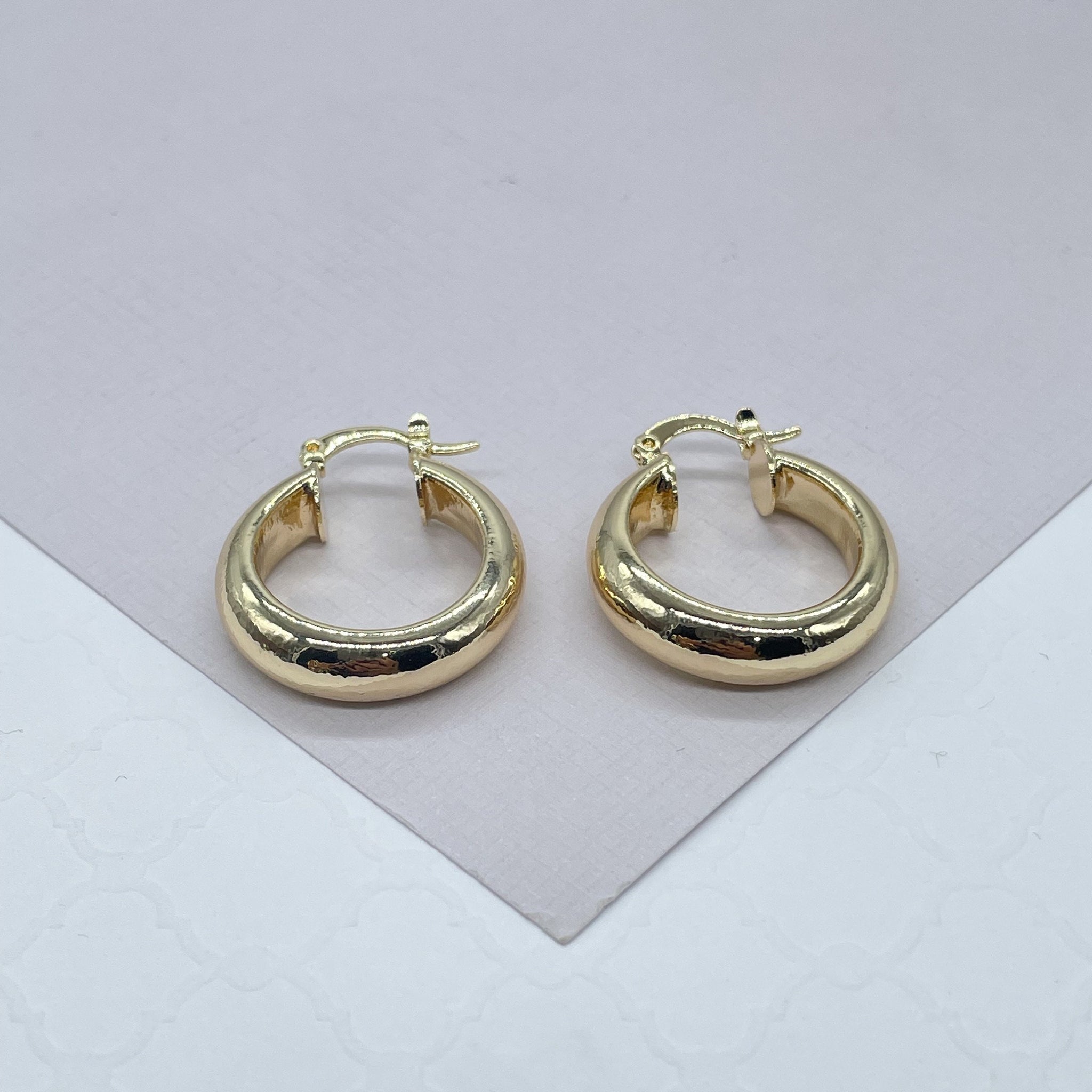 18k Gold Filled Thick Flat Inside Hoop Earrings, Plain Gold Fat