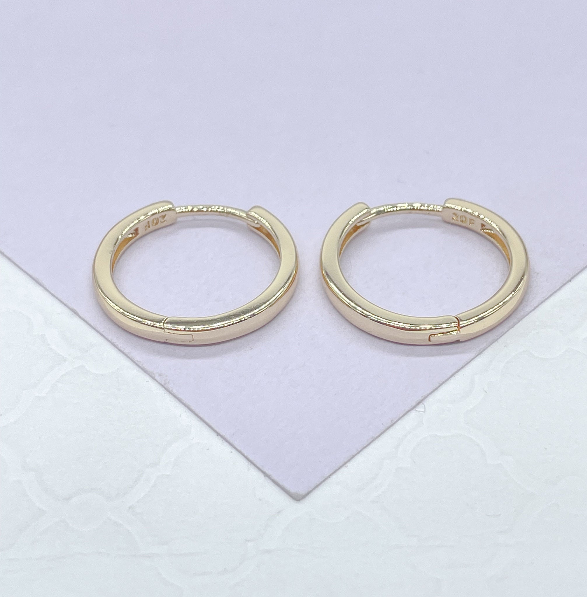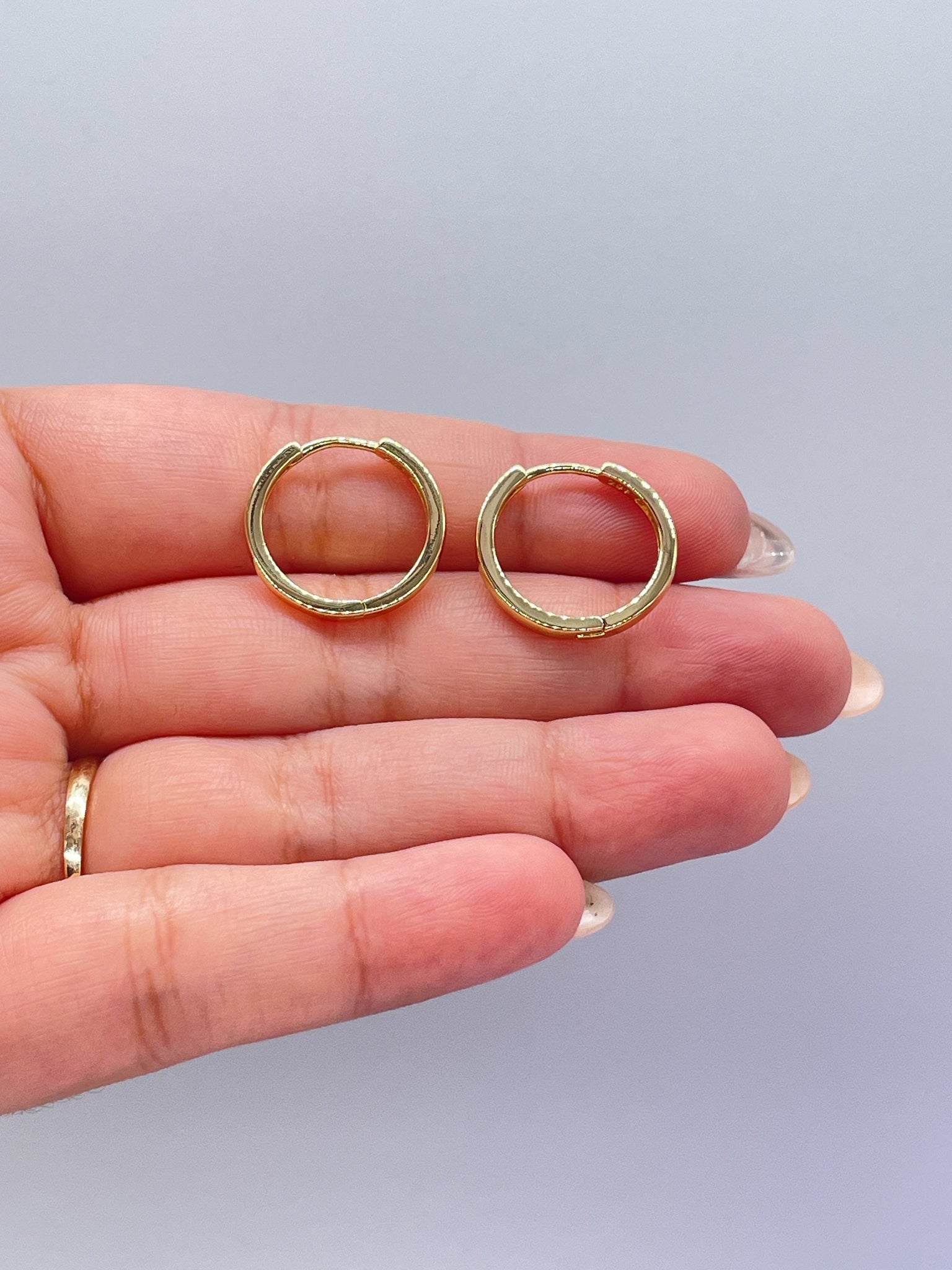 18k Gold Filled Ultra Thin Small Plain Sharp Edged Huggie-Hoop Earrings