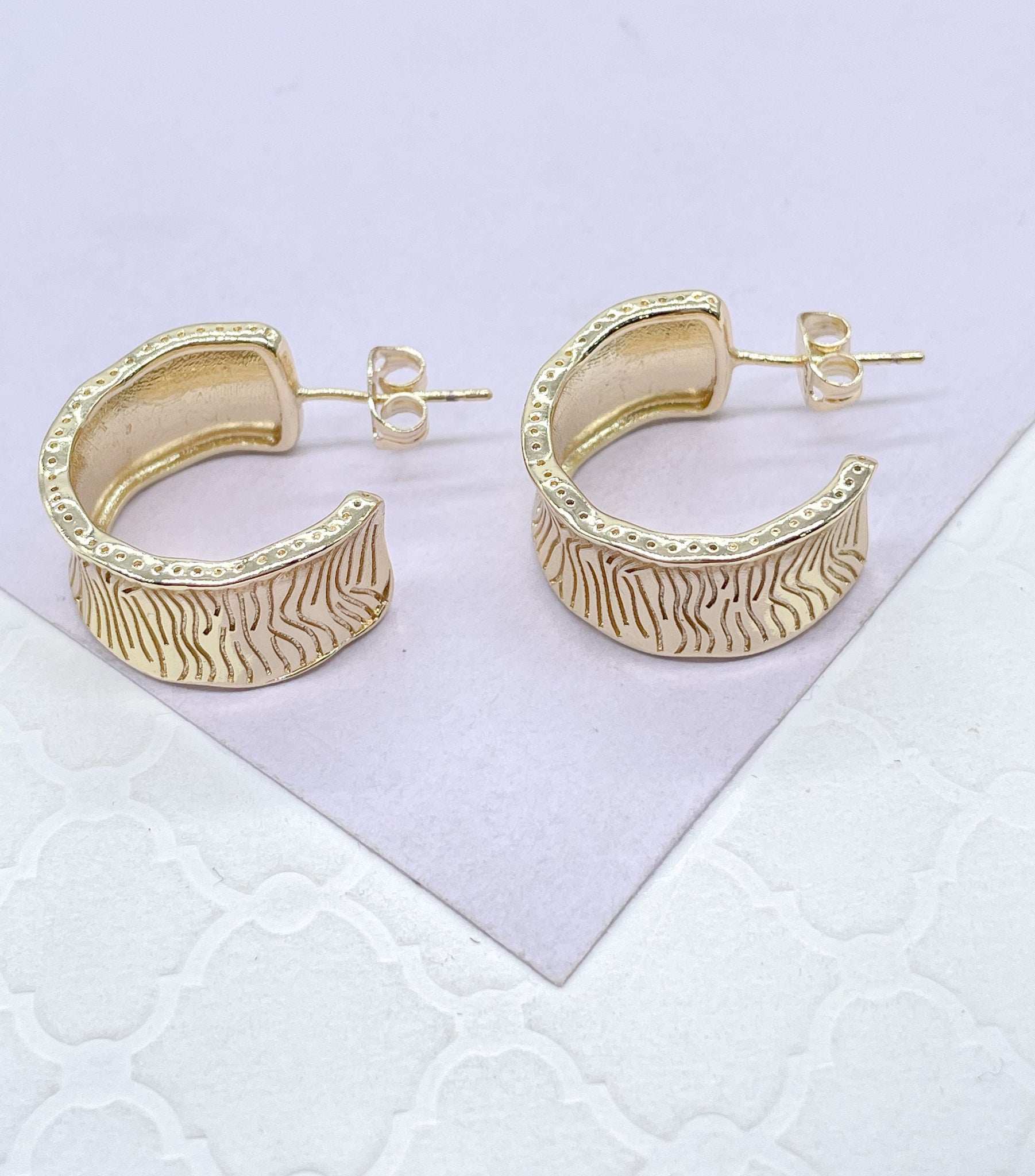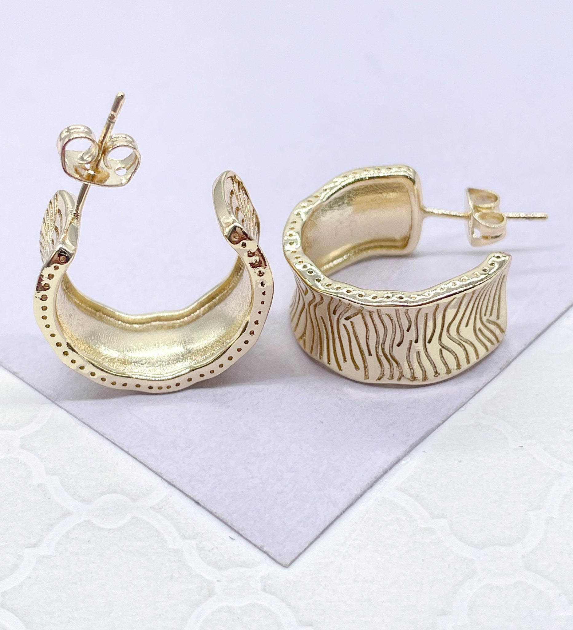 18k Gold Filled Wide Tree Trunk Patterned Open Hoop Earrings