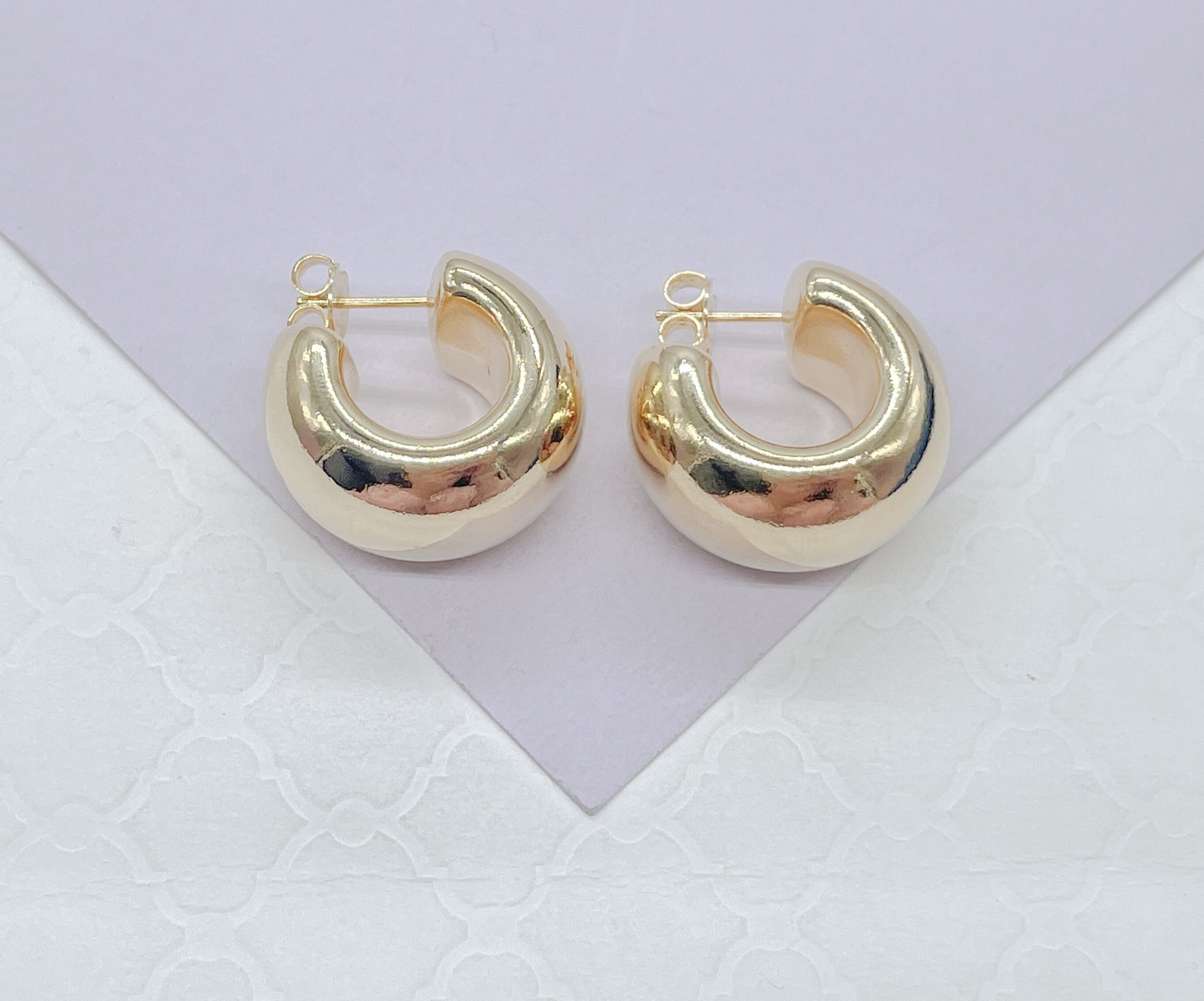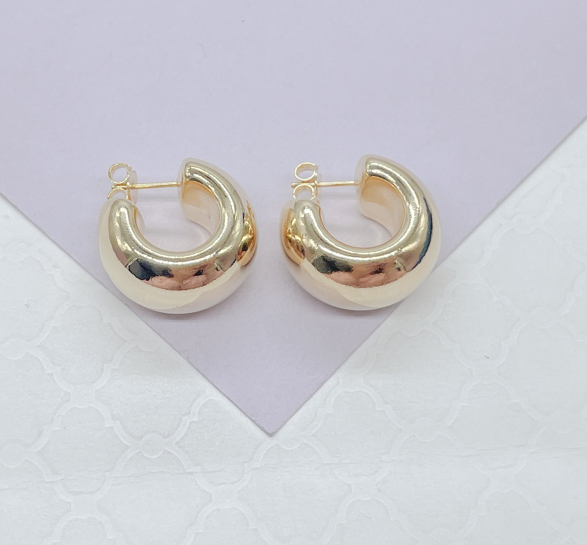 18k Gold Filled Hoop Earrings: XL Wide Flat Smooth Hoops