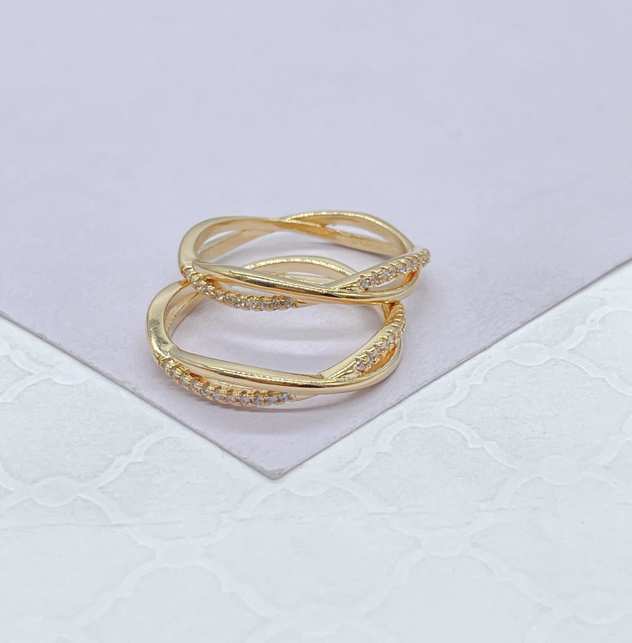 Transform your style with our 18k Gold Filled Rings. Designed to create the most exquisite and luxurious stack, this ring adds a touch of glamour to any outfit. Elevate your look and make a statement with our stunning eternity band.18k Goldfilled Minimalist Twisted Ring With Micro CZ Pave