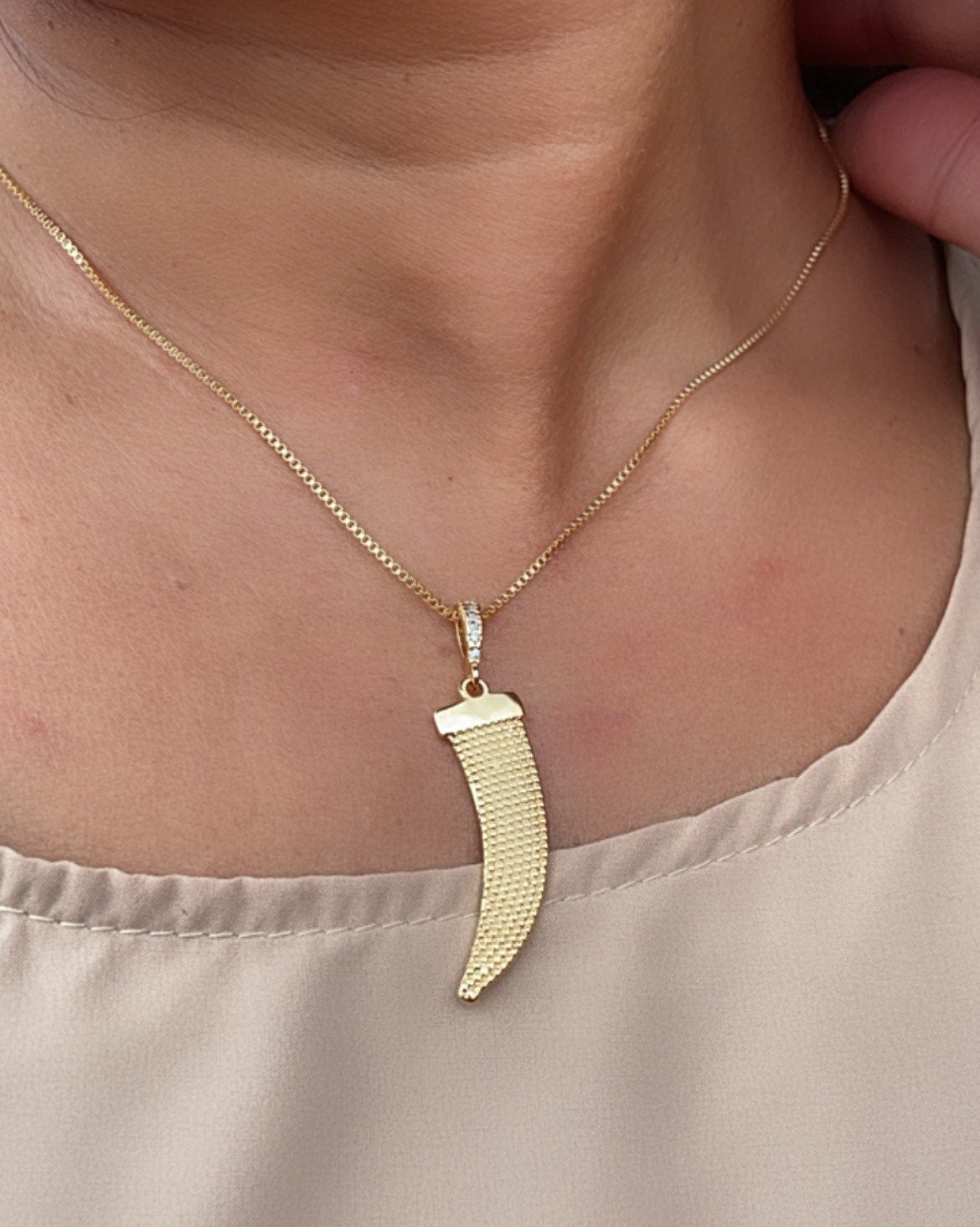 18k Gold Filled Elephant Tusk Pendant: Cubic Zirconia Bail, Good Luck Charm