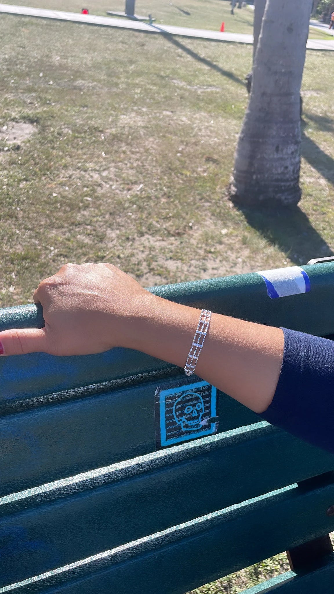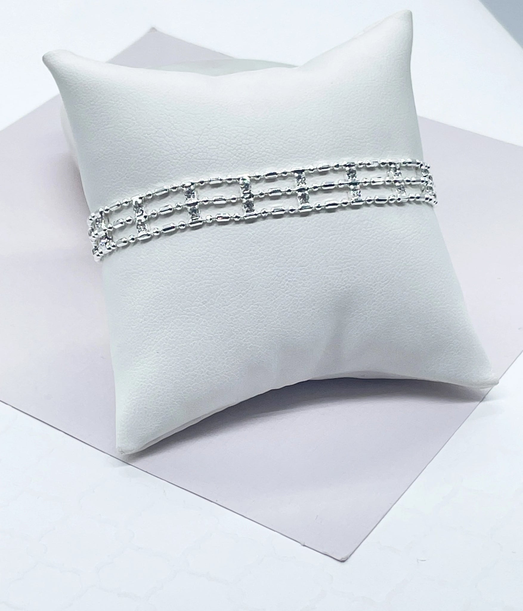 18k Silver Filled Silver 3 layered Dash & Dot Bracelet Patterned With Zirconia Stones