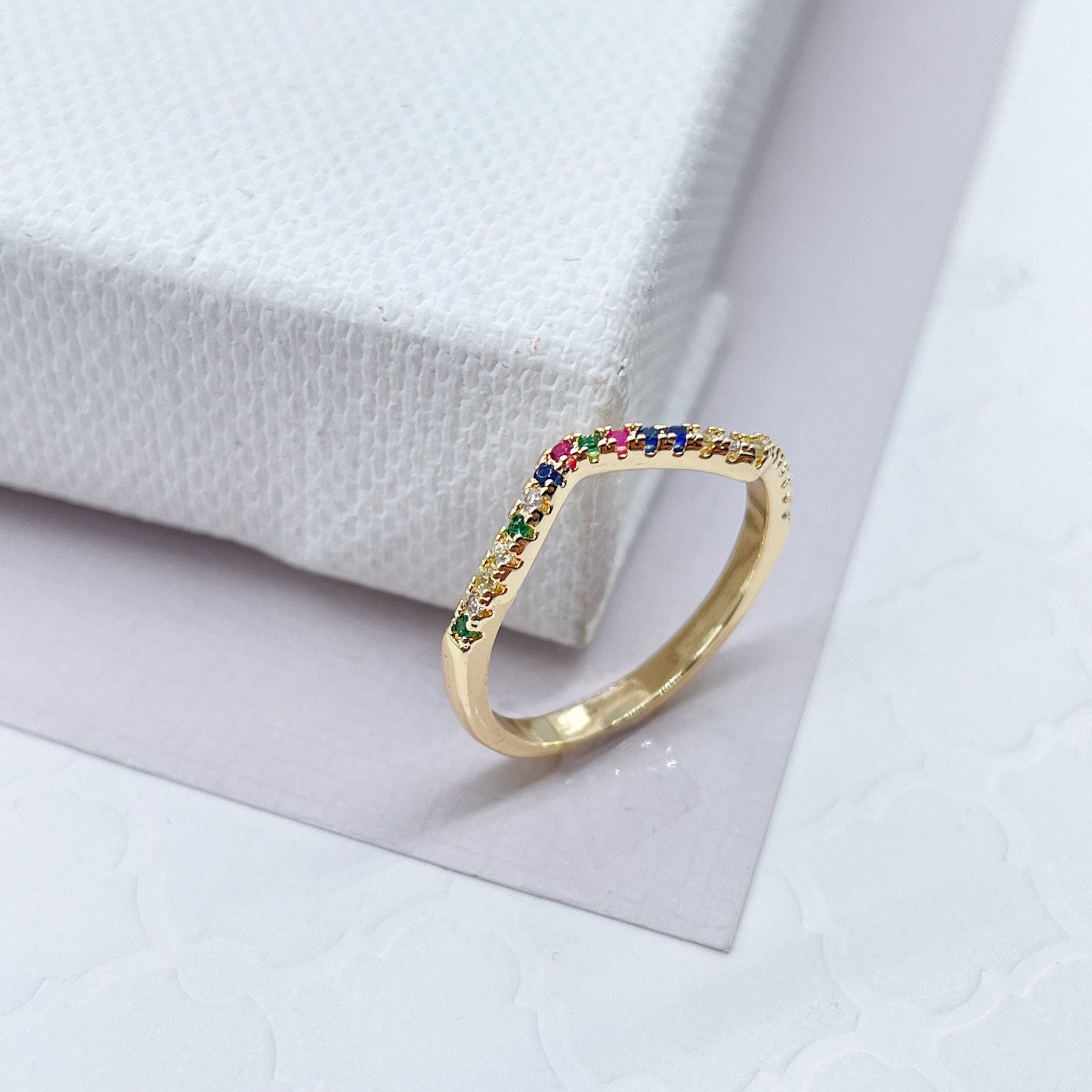 "Transform your style with our 18k Gold Filled Chunky CZ Eternity Band Ring. Designed to create the most exquisite and luxurious stack, this ring adds a touch of glamour to any outfit. Elevate your look and make a statement with our stunning rings."18k Gold Filled Pave Micro Zirconia Colorful Dainty Ring