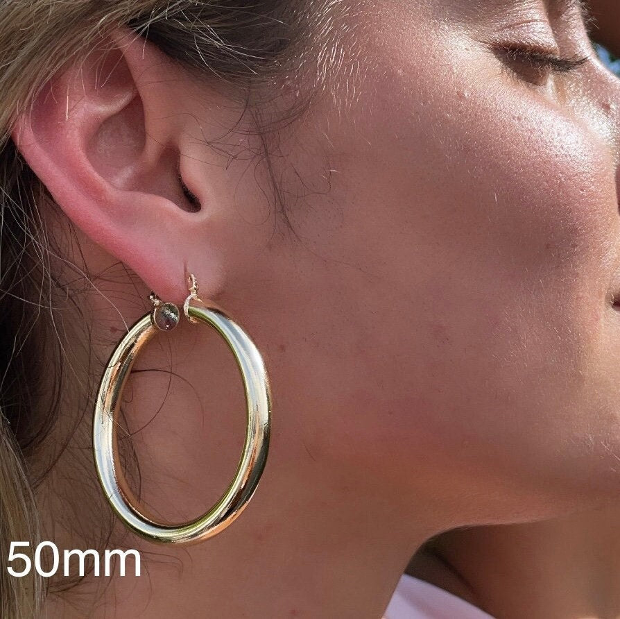 Inspired Selena Large 18k Gold Filled 5mm Plain Hoop Earrings And Silver Filled Plain Hoop Earrings Wholesale And Jewelry Making Supplies