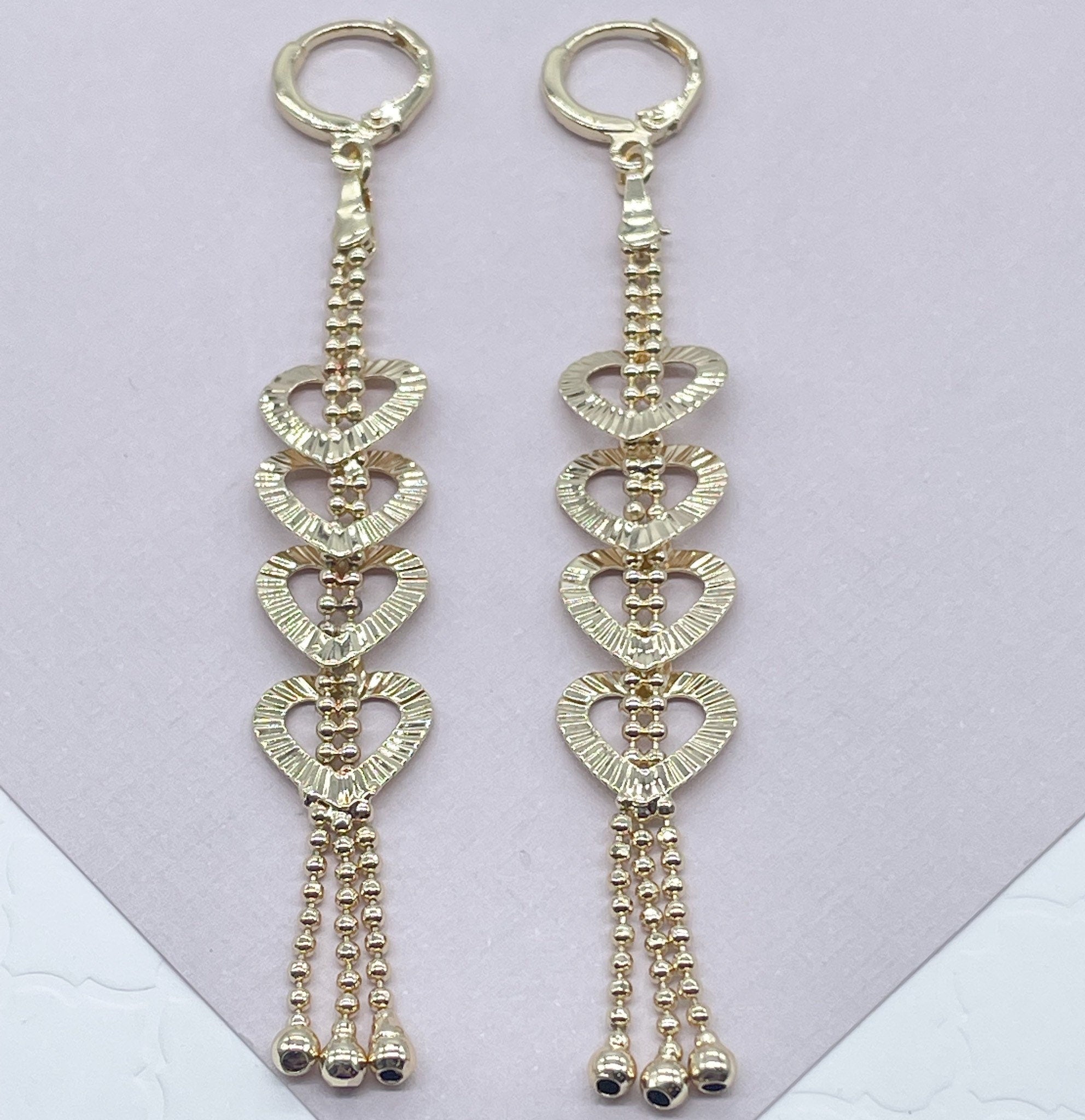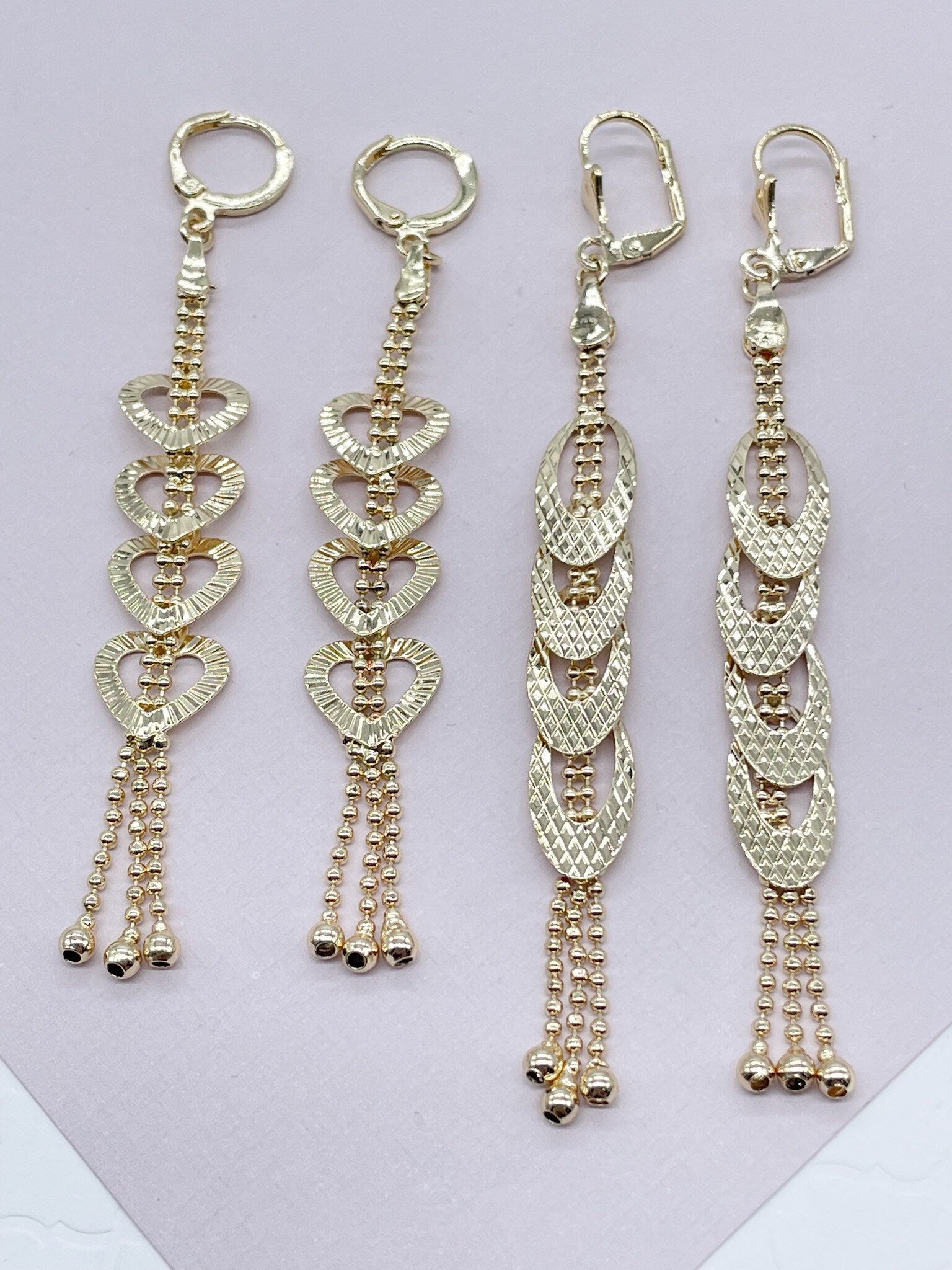 18k Gold Filled Oval & Heart Shape Dangling Earrings
