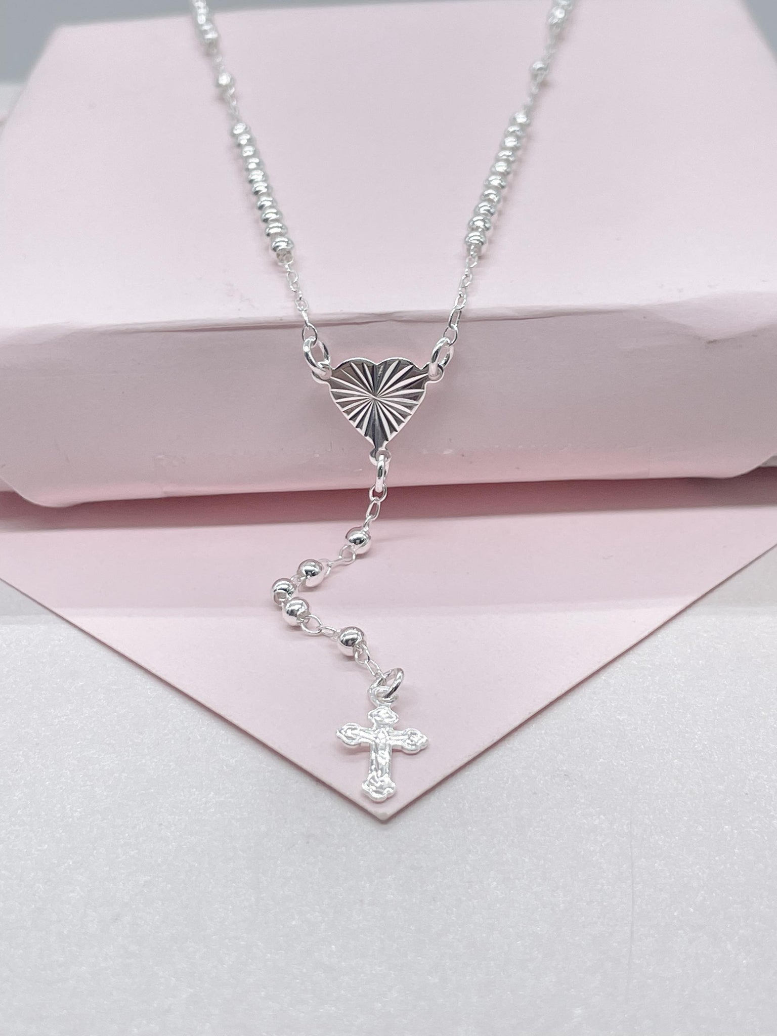 Silver Filled Dainty Rosary with sparkle Heart Center Crucifix Cross