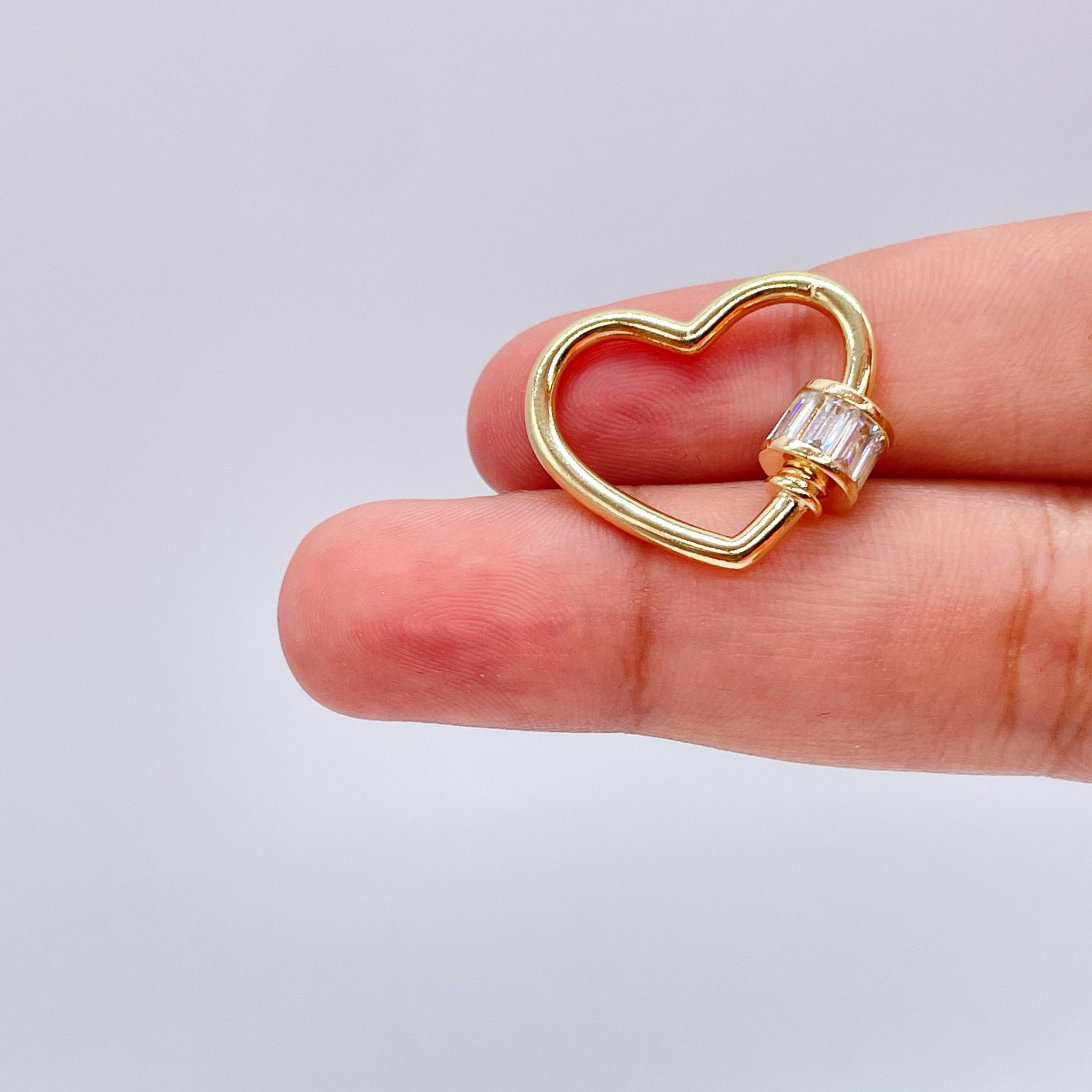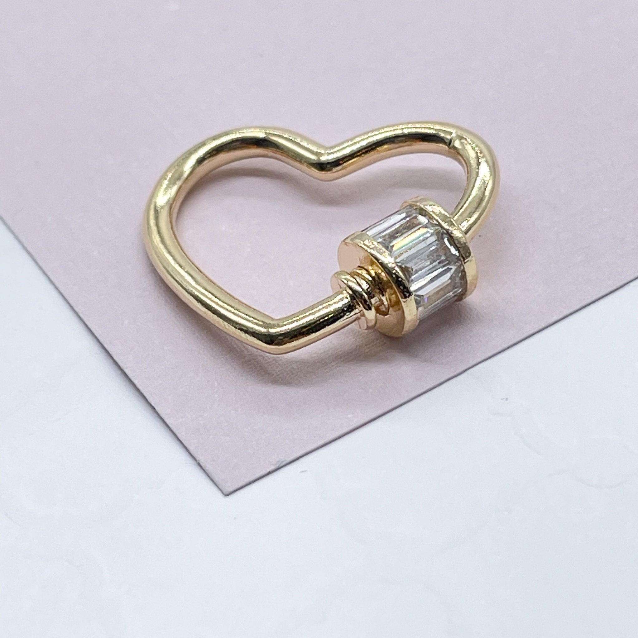Unique 18k Gold Filled Heart Shape Carabiner Lock Clasp Featuring Clear Baguette